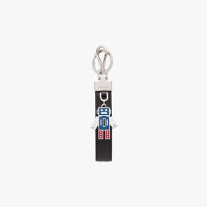 Black Customized Saffiano leather keychain