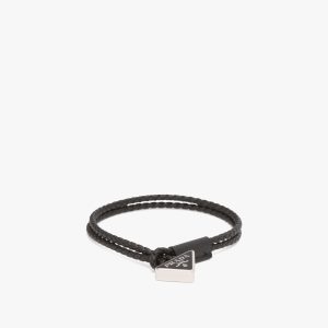Black Braided Saffiano Leather Bracelet