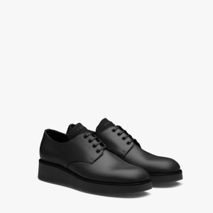 Black Brushed leather derby shoes