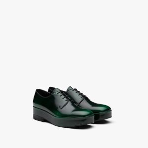 Green Brushed leather laced derby shoes