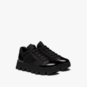 Black Prada Monolith brushed leather and nylon lace-up shoes