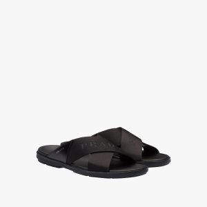 Black Brushed leather and nylon tape crisscross slides