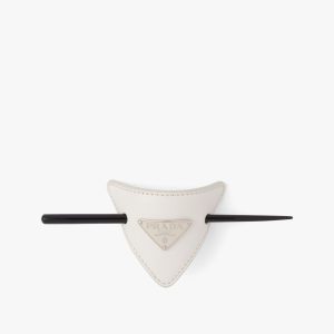 White Leather hair clip