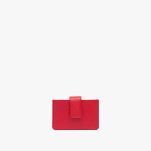 Powder Pink/fiery Red Saffiano Leather Card Holder