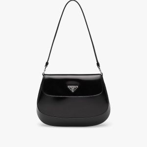 Black Prada Cleo brushed leather shoulder bag with flap