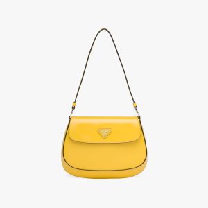 Bright Yellow N Prada Cleo brushed leather shoulder bag with flap