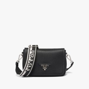 Black Leather Prada Triangle shoulder bag