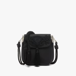 Black Nylon and leather bag with decorative trim