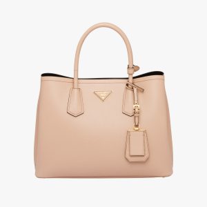 Cameo/black Medium Saffiano Leather Double Prada Bag