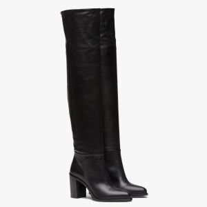 Black Brushed leather and stretch nappa leather boots
