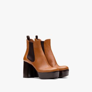 Cognac Leather platform booties