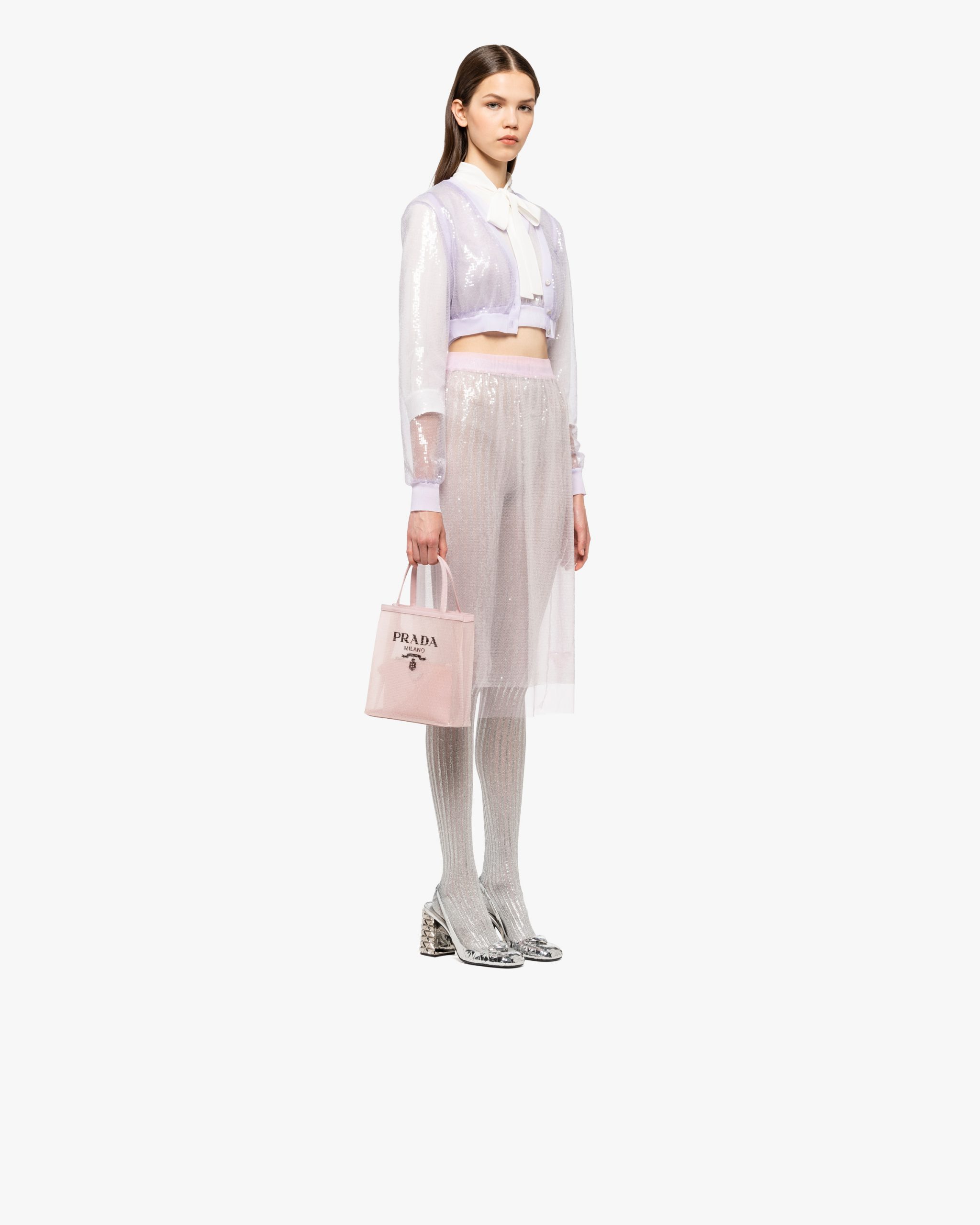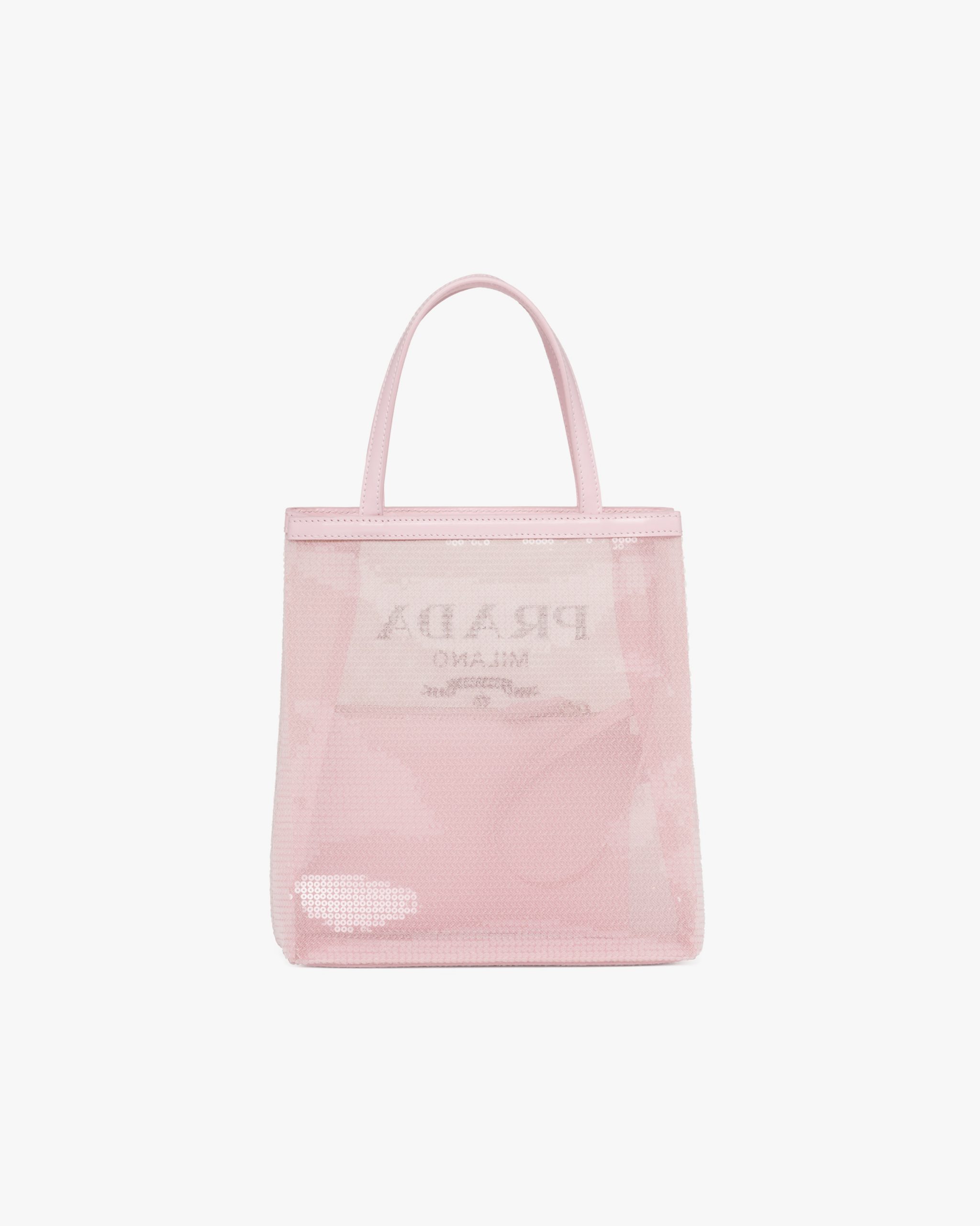 Alabaster Pink Small sequined mesh tote bag