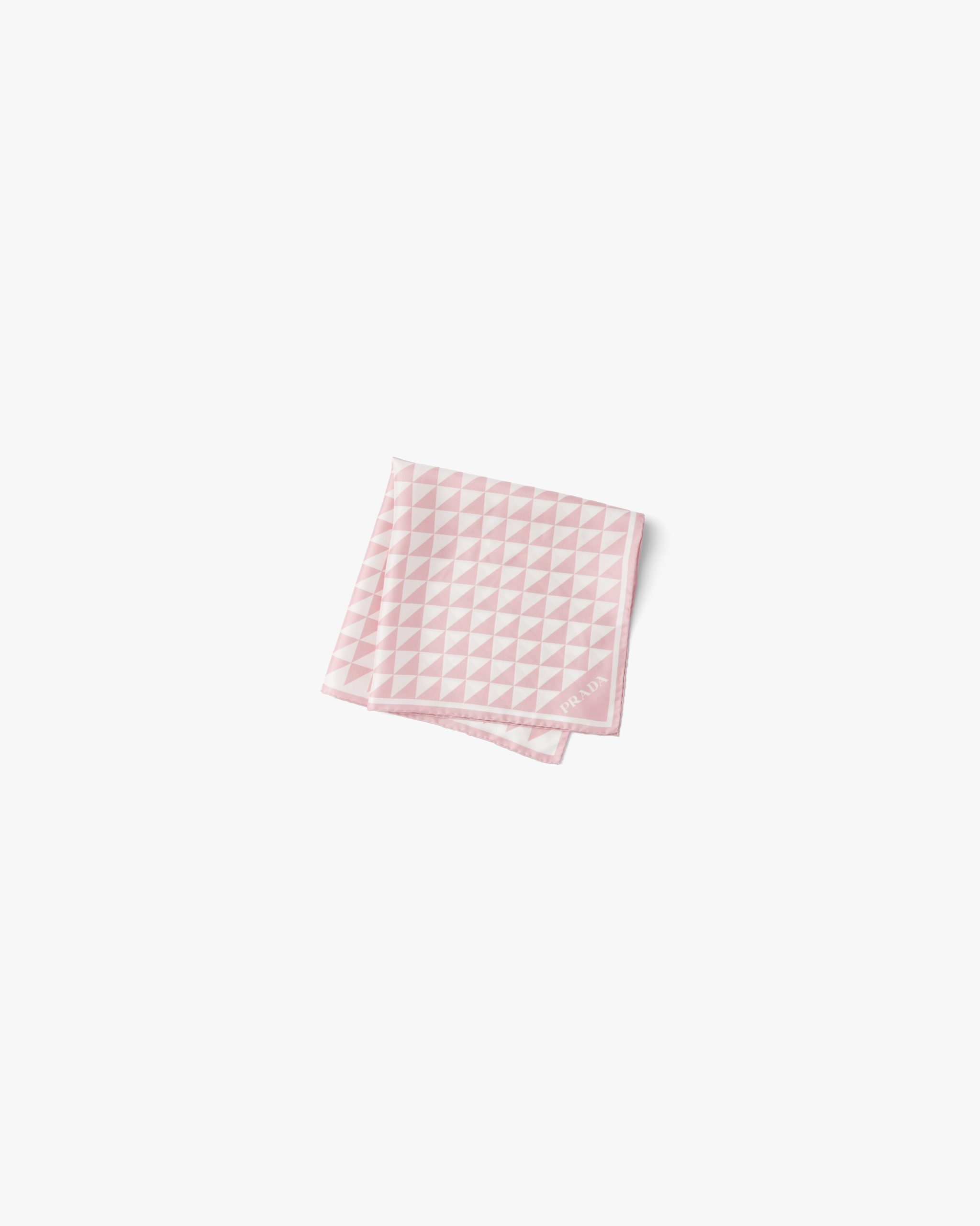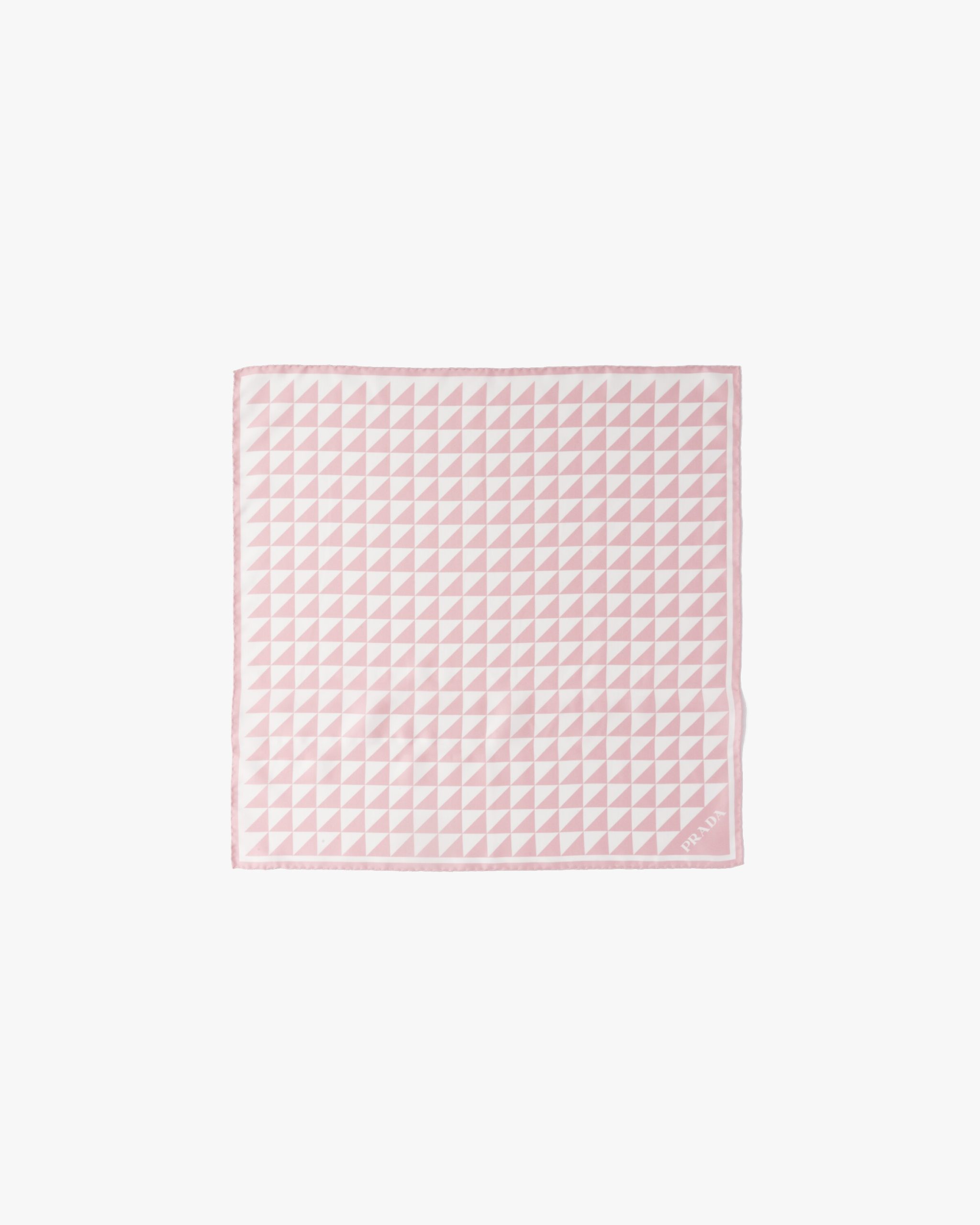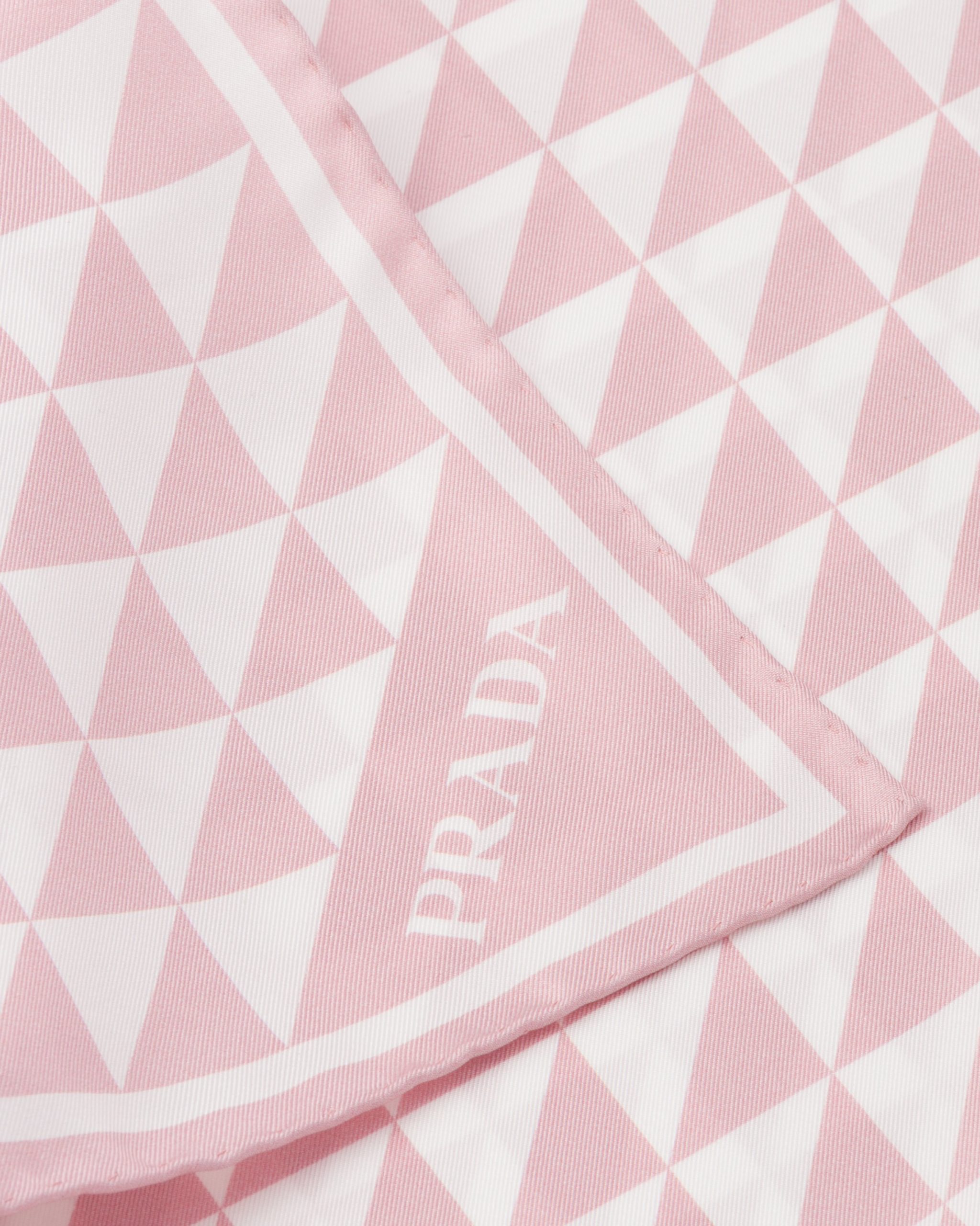 The triangle, Prada’s iconic logo2 since 1913, is reimagined in always new ways and is found in the graphic pattern on this twill scarf.