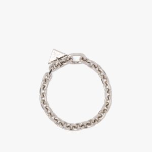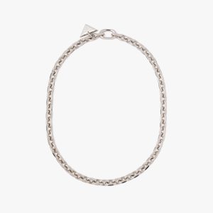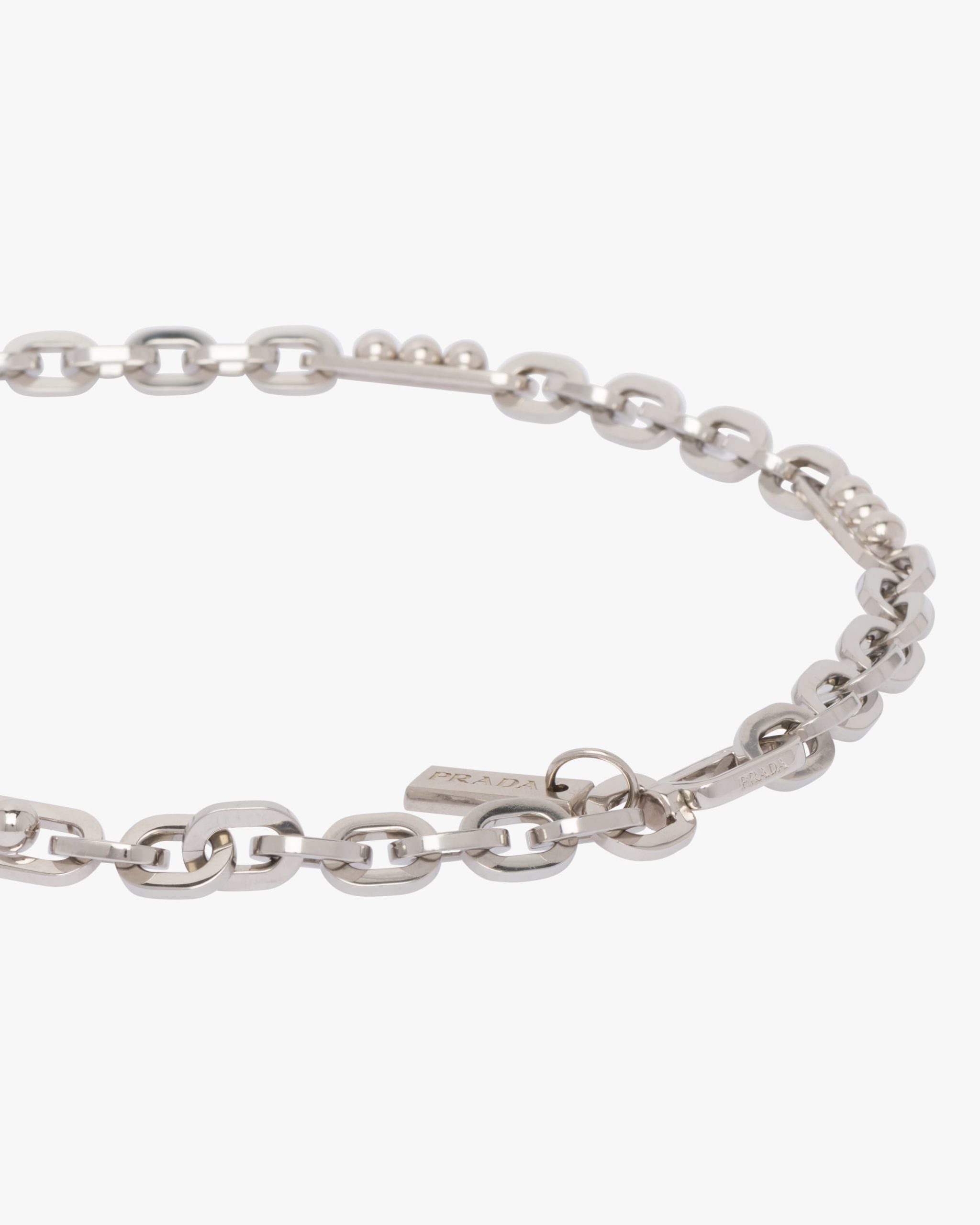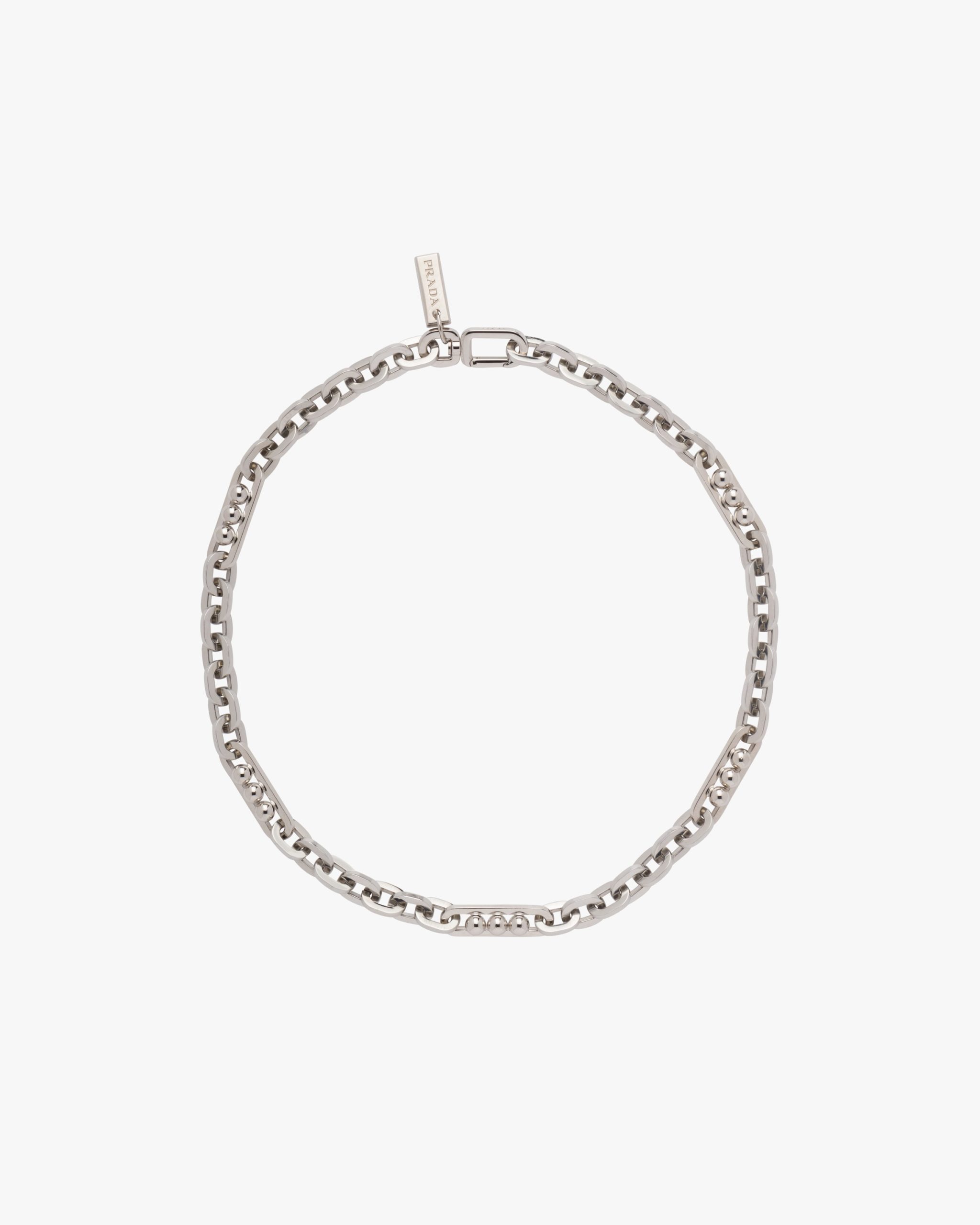 A distinctive chain design with geometric links characterizes this metal necklace with a contemporary personality. The accessory is decorated by the engraved logo2 and accented by the logo2 tag.
