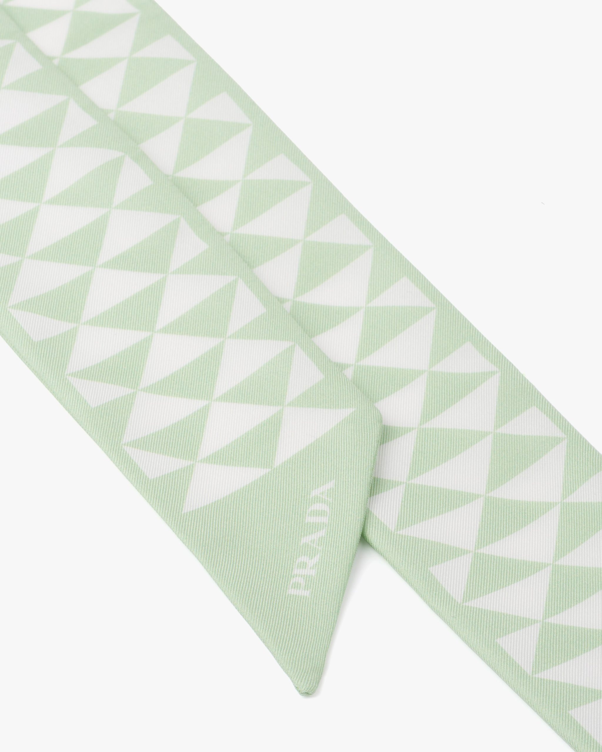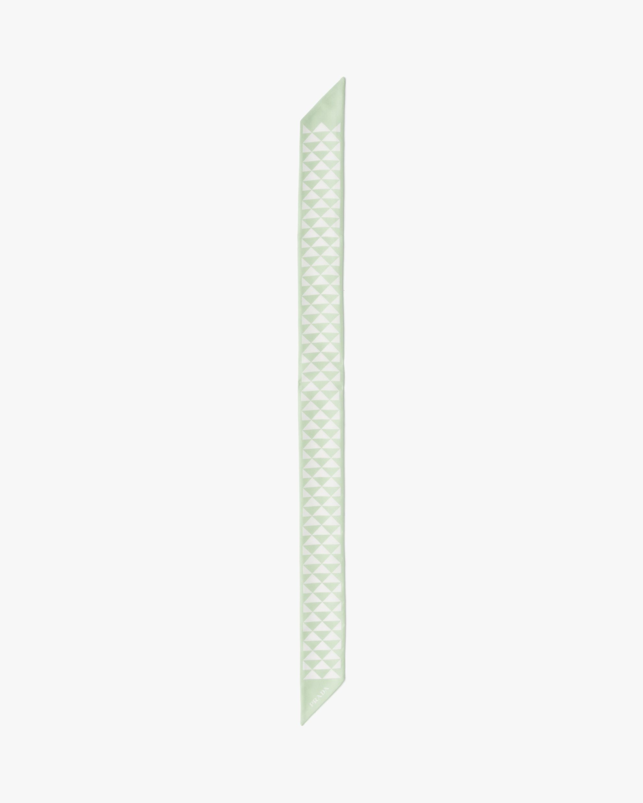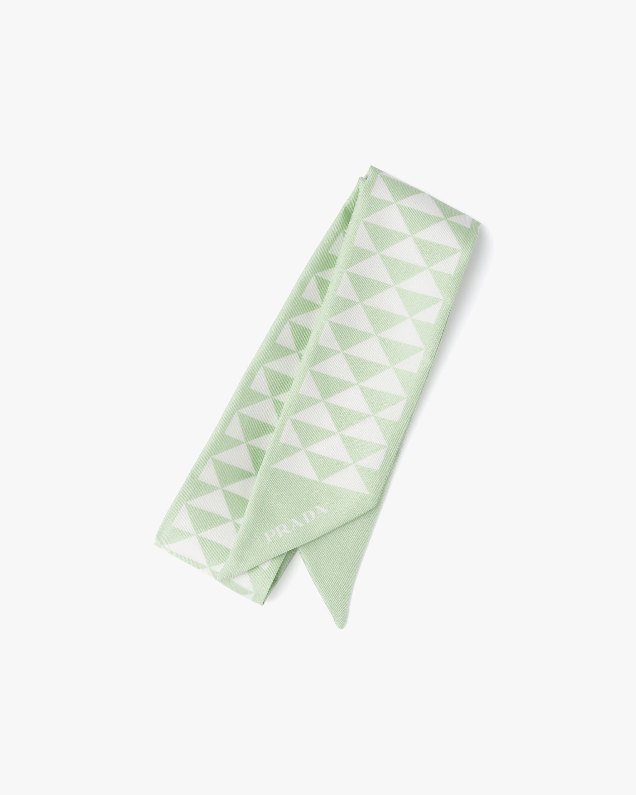 The triangle, Prada’s iconic logo2 since 1913, is reimagined in always new ways and is found in the graphic pattern on this twill scarf.