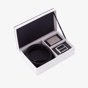 This belt features a pure and elegant design, with a Saffiano leather buckle and enriched by the metal lettering logo2.