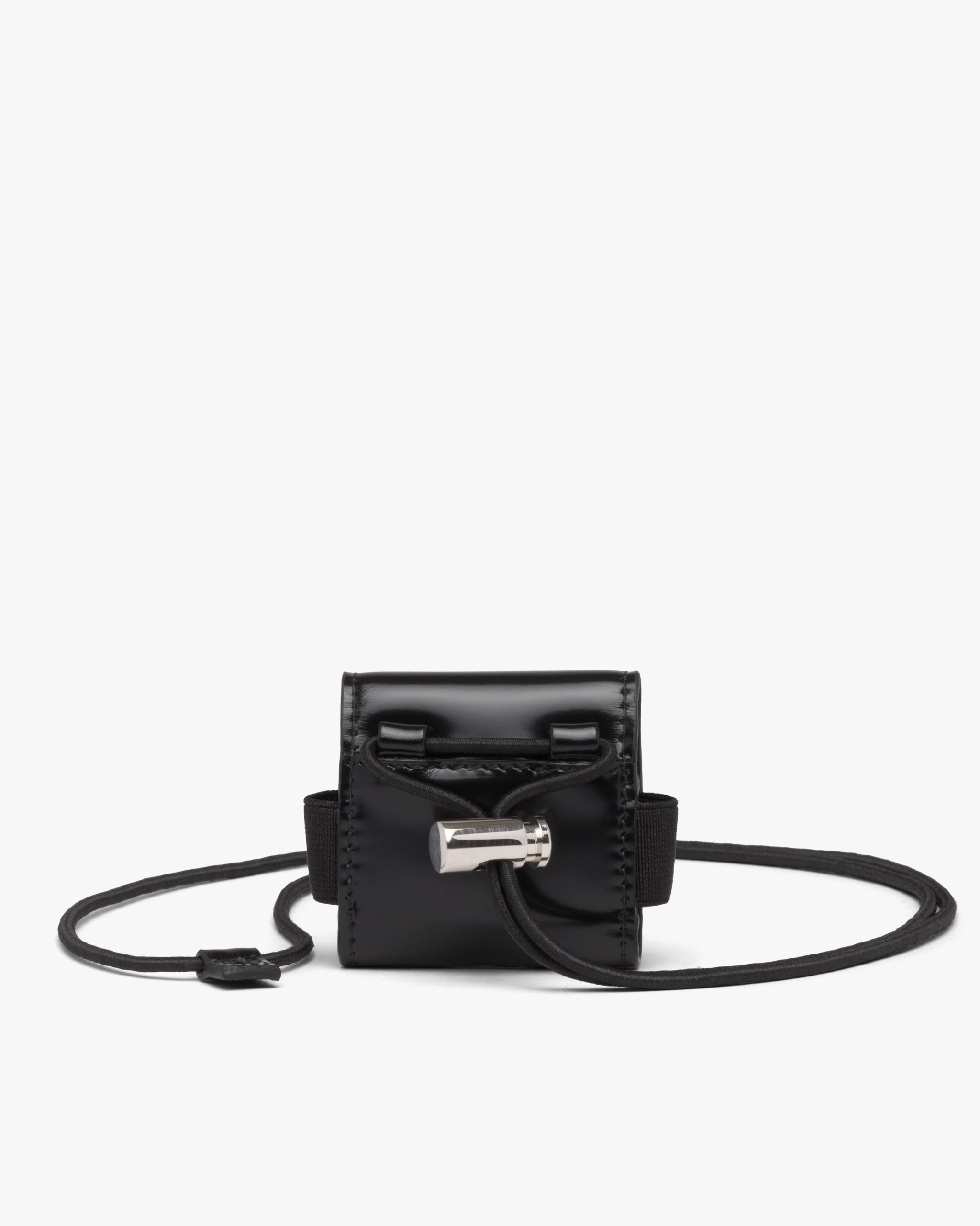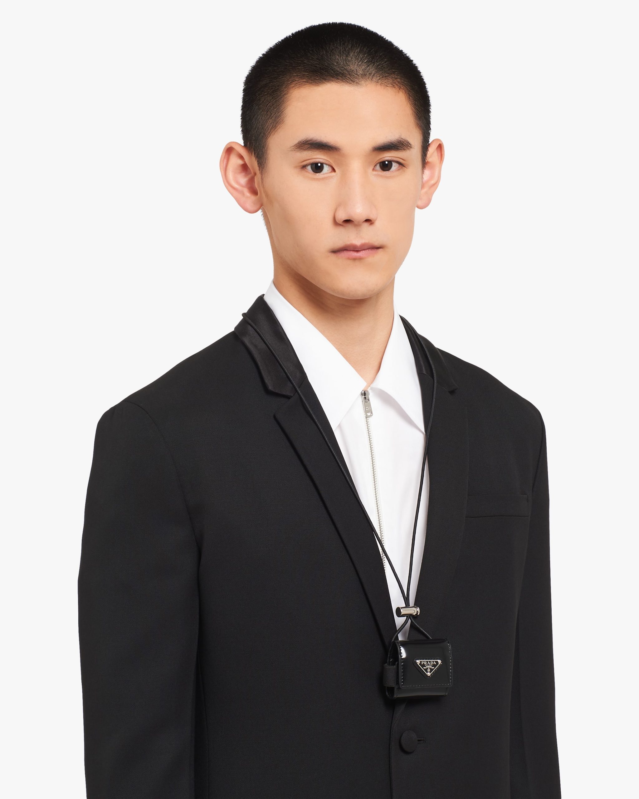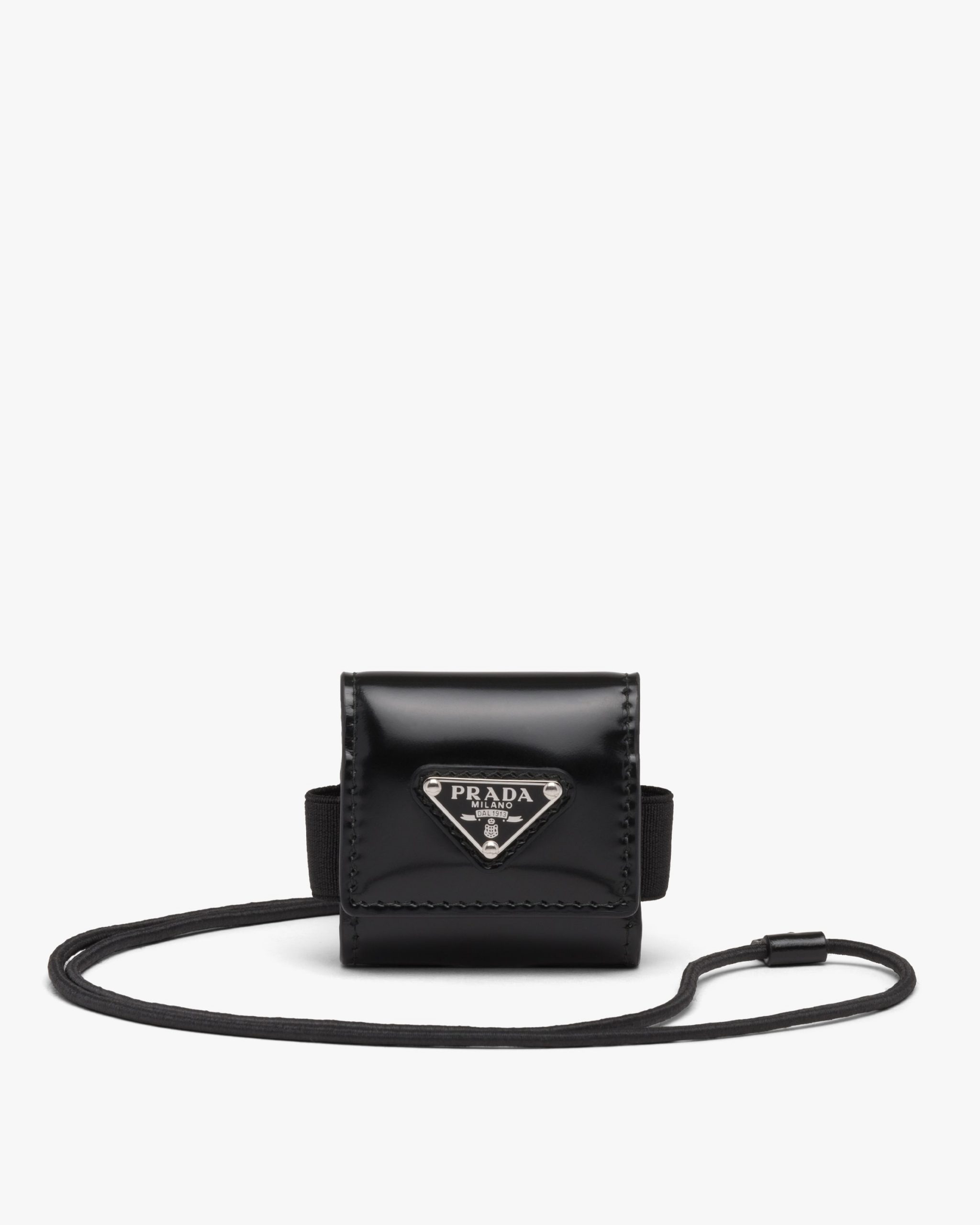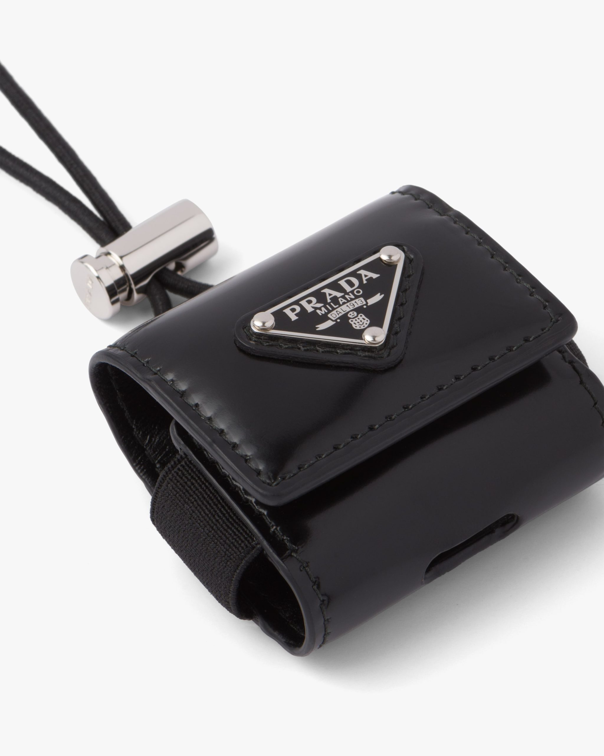 Technology, innovation and tradition come together in this AirPods Pro case made of brushed leather: an iconic material of the brand since the ’90s and historically linked to the luxury world. The accessory is decorated with the enameled metal triangle logo2.