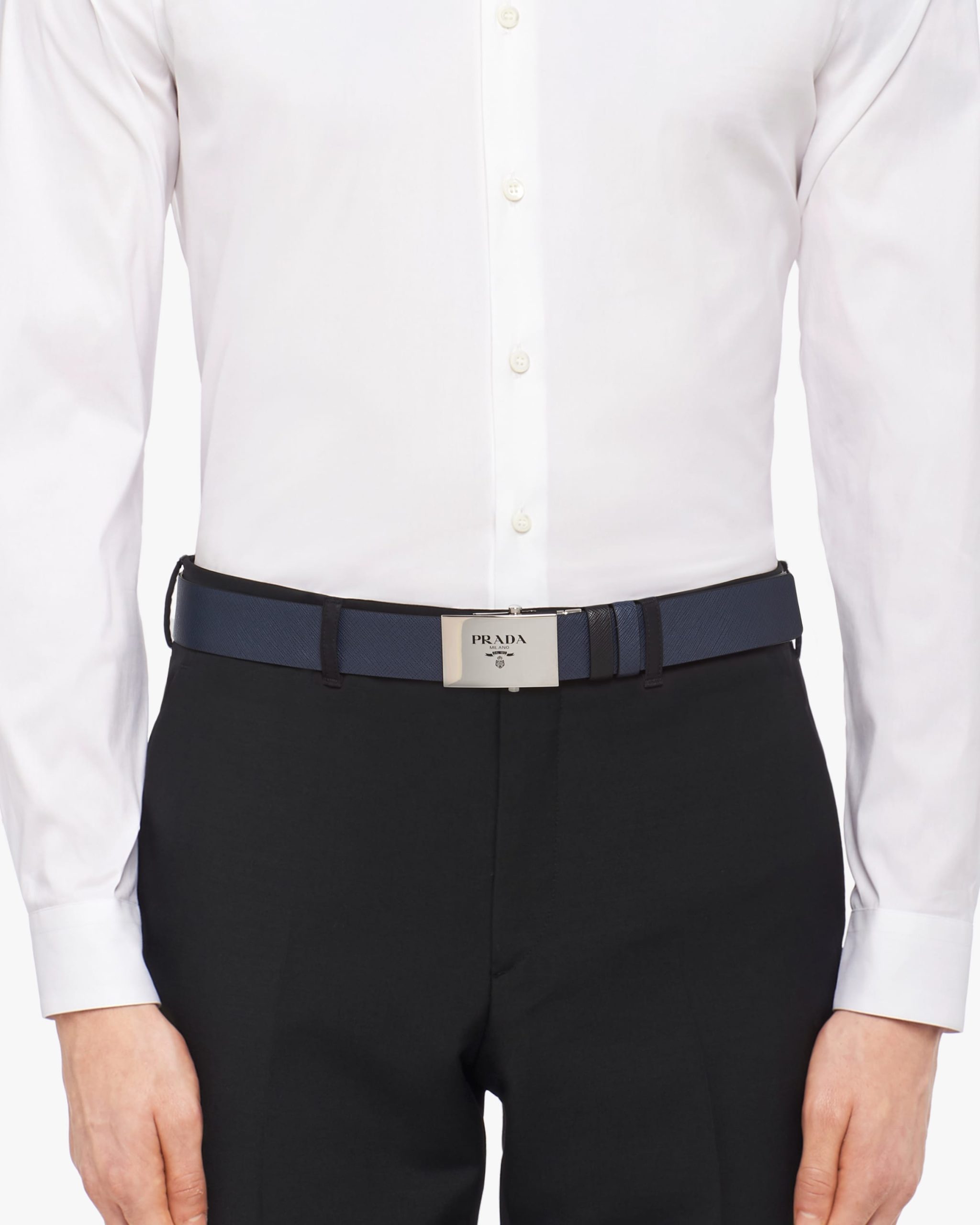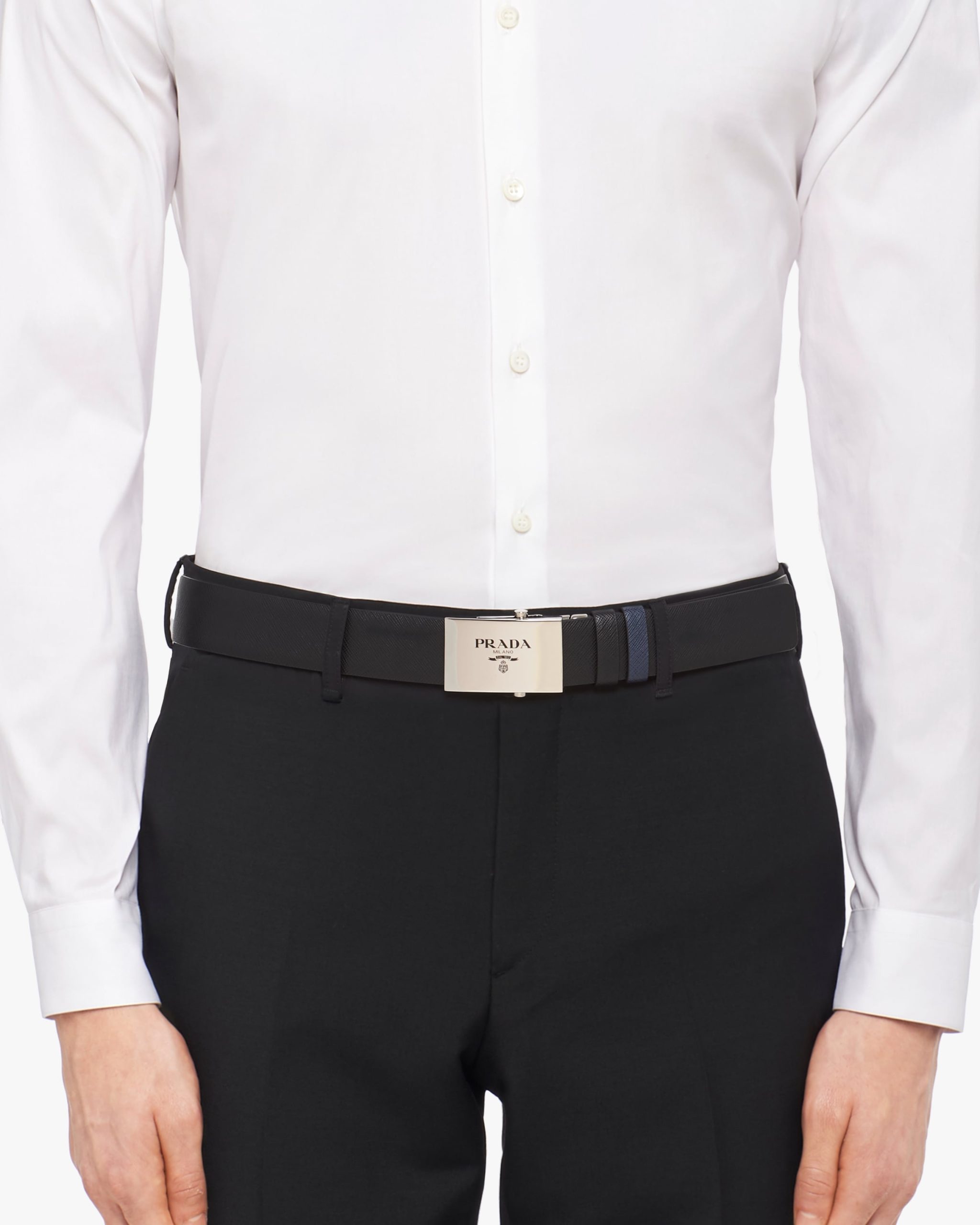 This belt is characterized by a reversible design and by the logo2 engraved on the buckle.