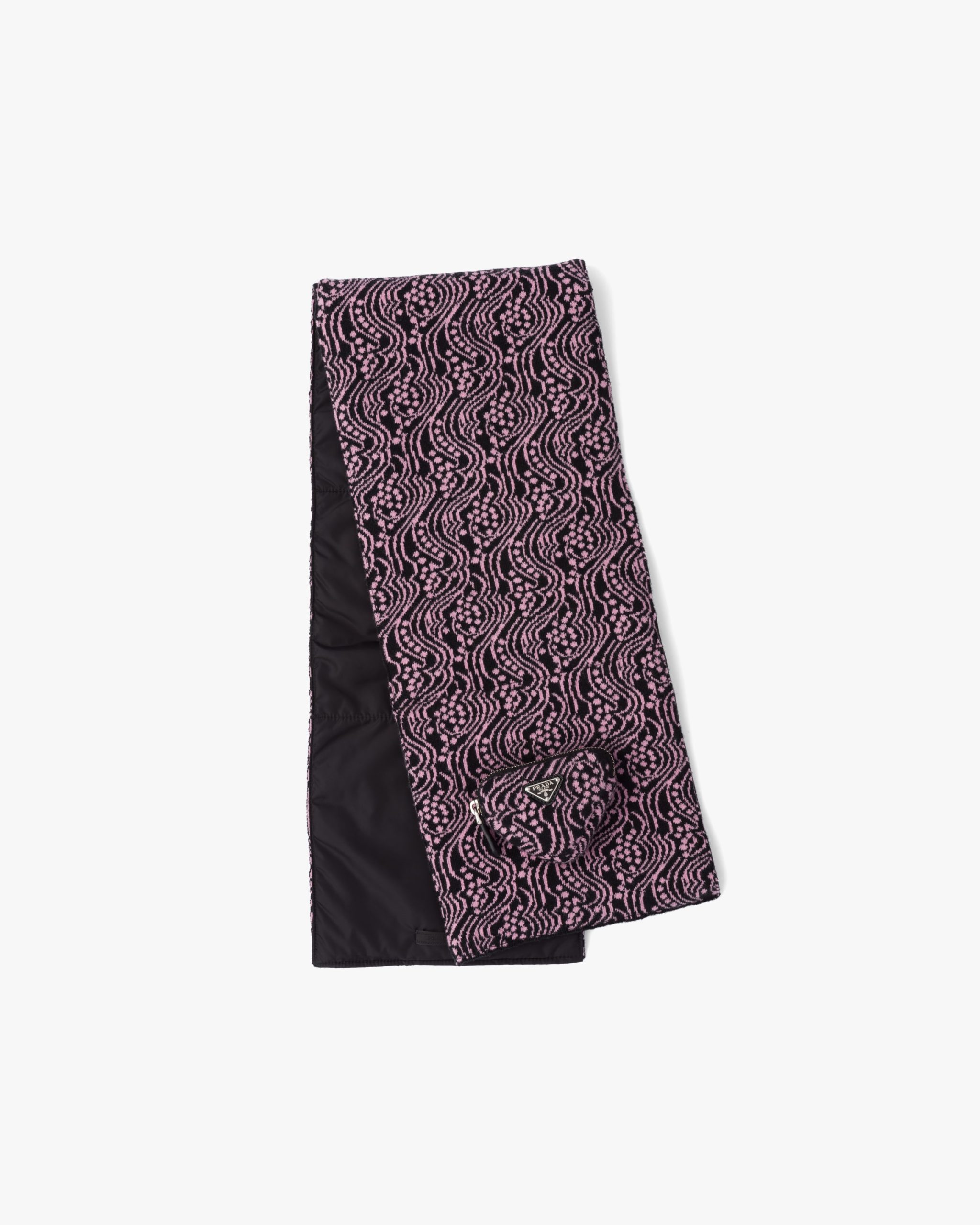 Black/black And Pink Reversible jacquard and Re-Nylon scarf