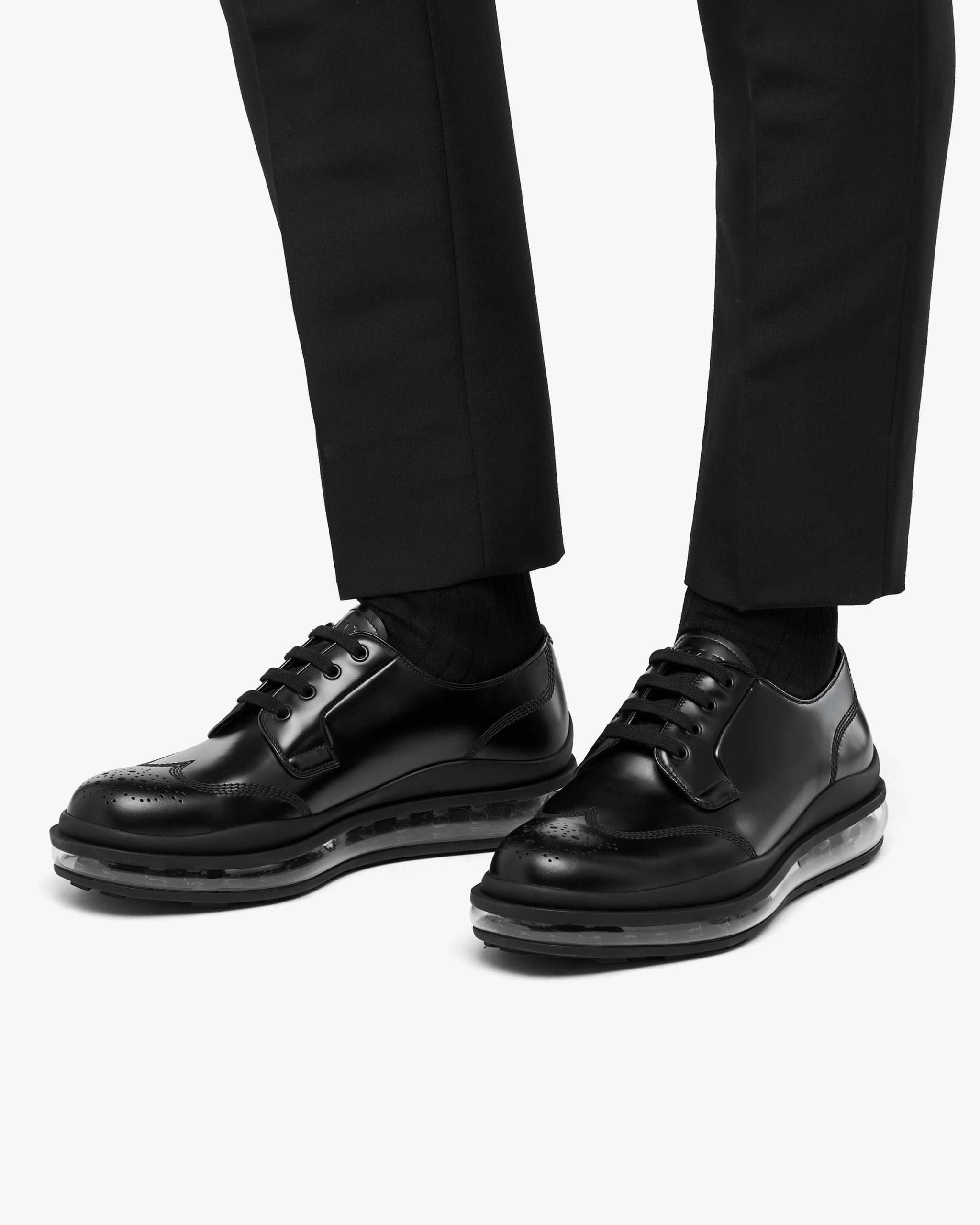 These derby lace-ups are characterized by the rubber sheath that defines its modern, innovative style.