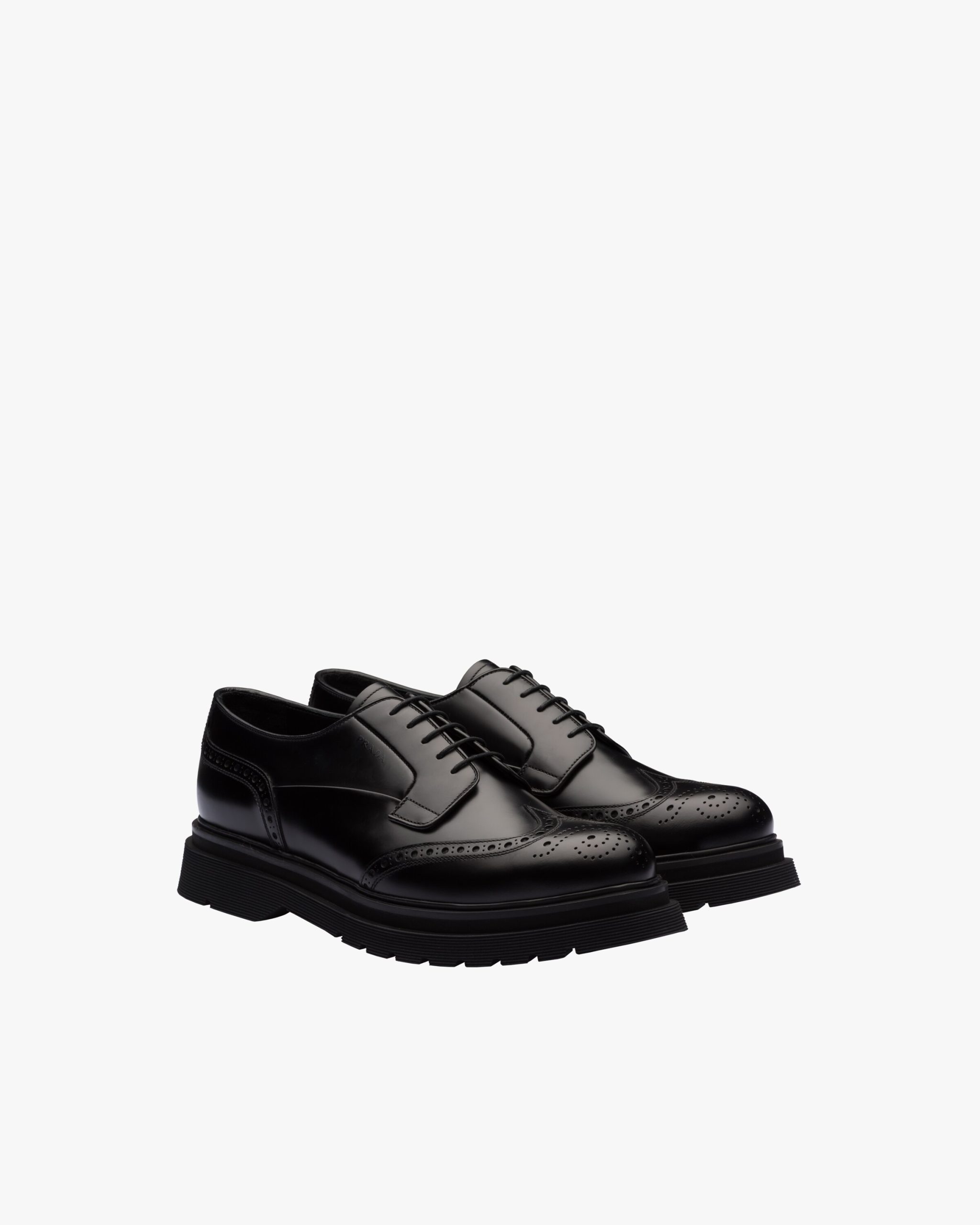 These classic brushed calf leather laced derby shoes are reinterpreted with the wingtip motif on the upper. The light rubber sawtooth sole emphasizes its contemporary style.