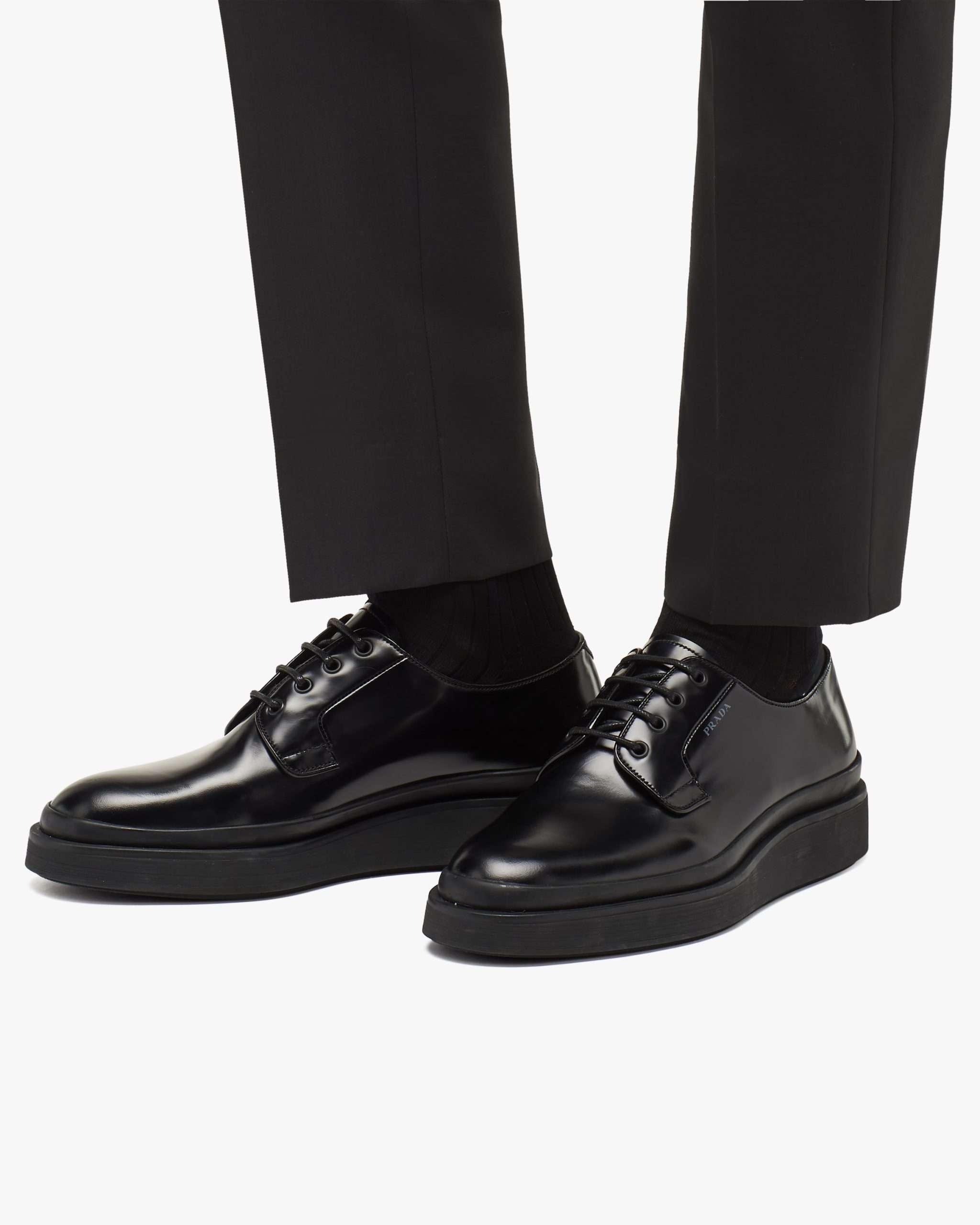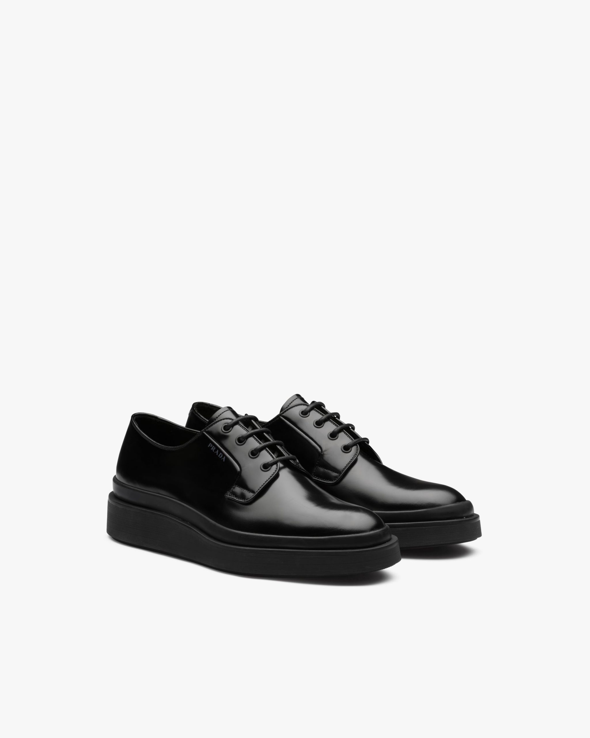The classic Derby style is updated in this brushed calf shoe with rubber platform and elegant screen-printed logo2.