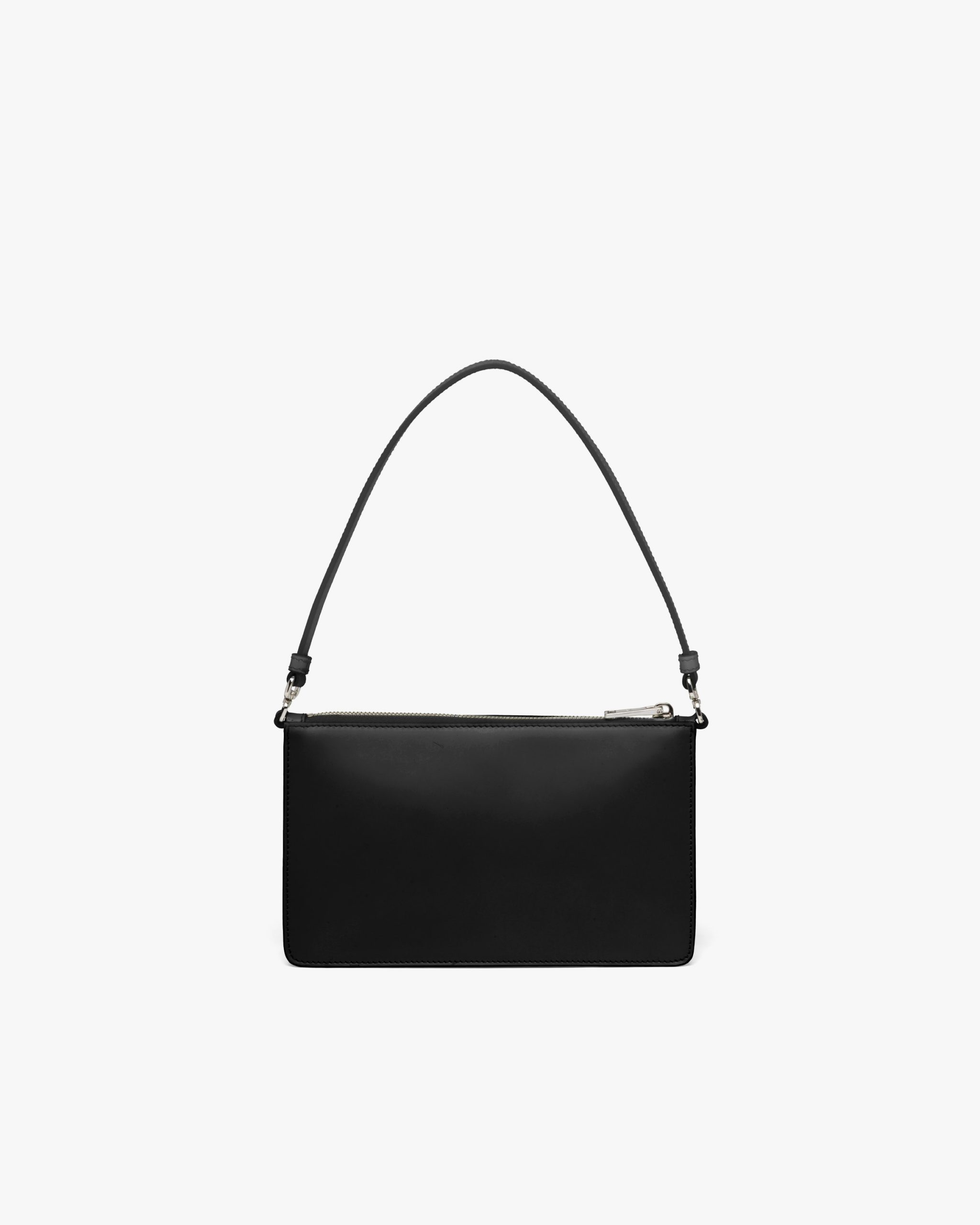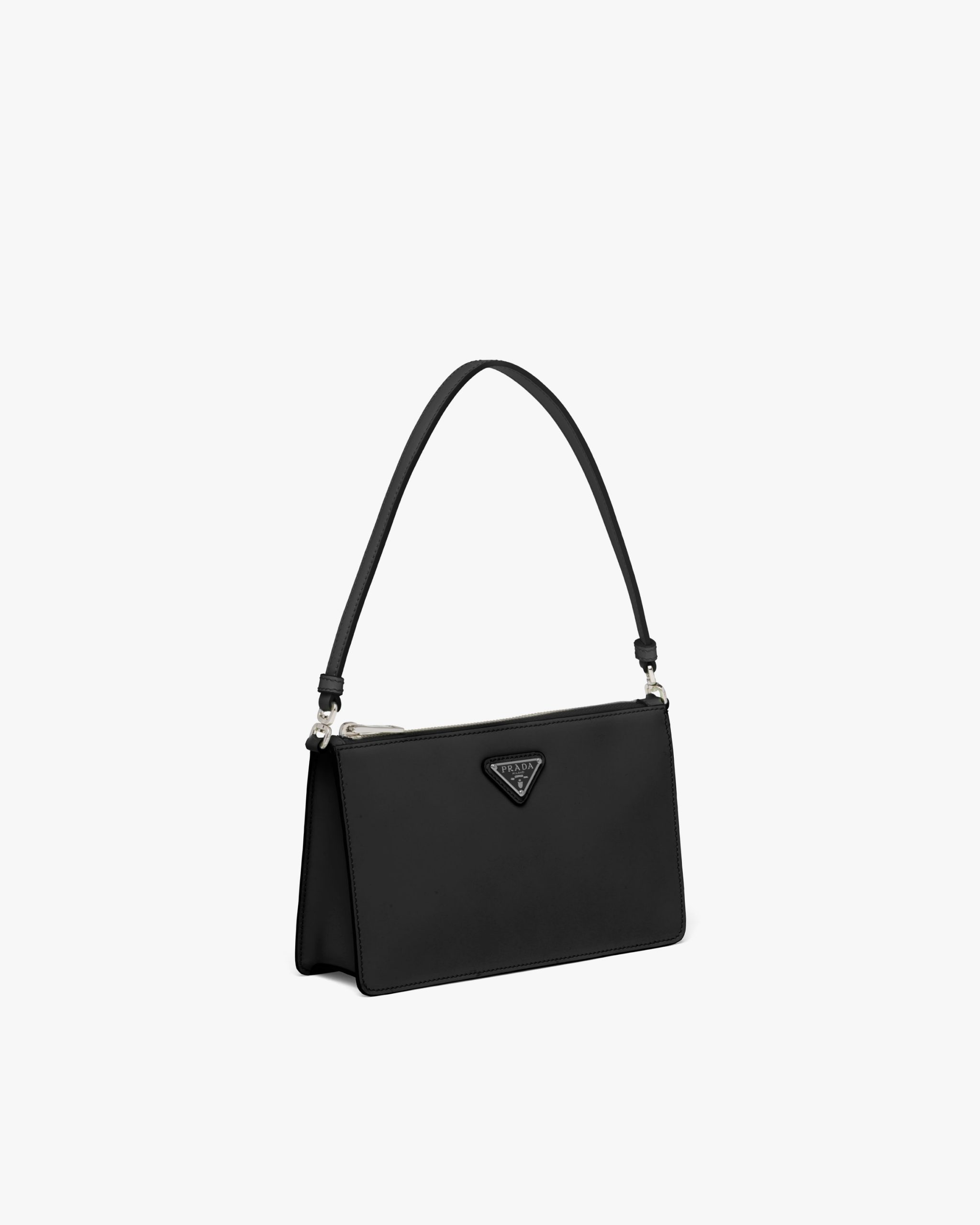 Decorated with the enamel triangle logo2 and defined by a structured design, this mini-bag is made of brushed leather, an iconic material of the brand since the ’90s and traditionally tied to the luxury world.