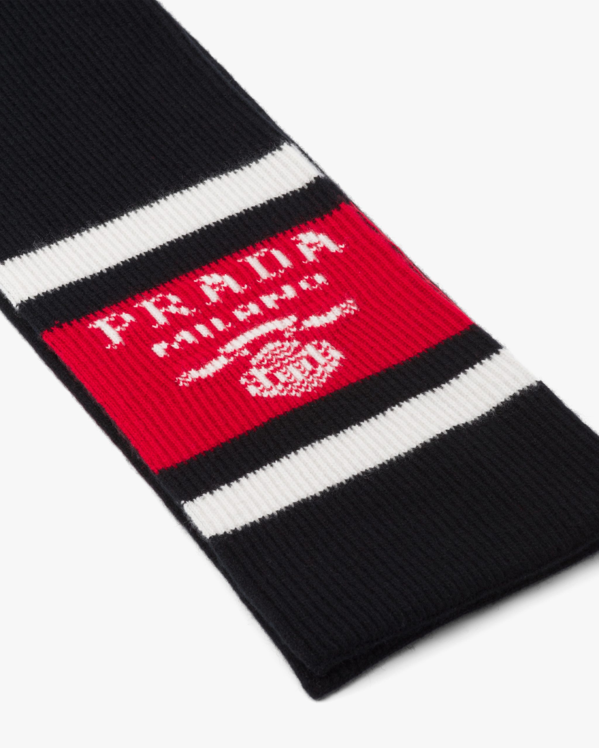 This sporty yet refined scarf is made of soft, fine cashmere. The accessory that recalls a vintage design of an alpine wardrobe is decorated with the jacquard lettering logo2.