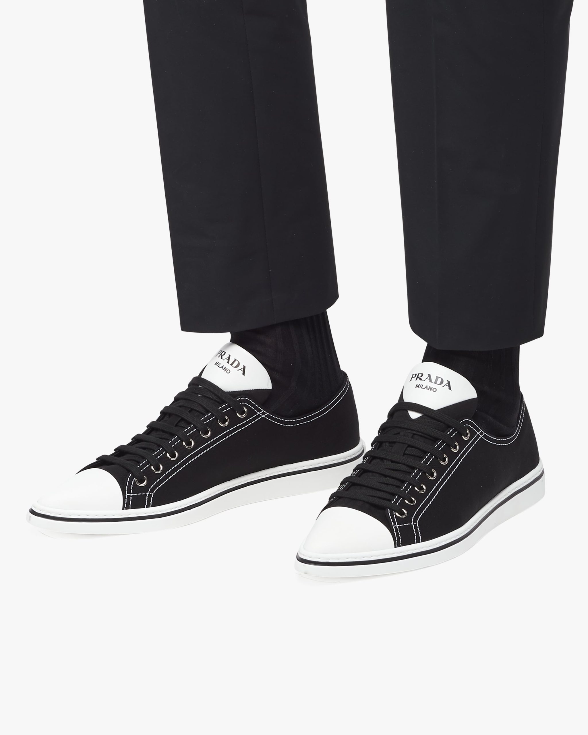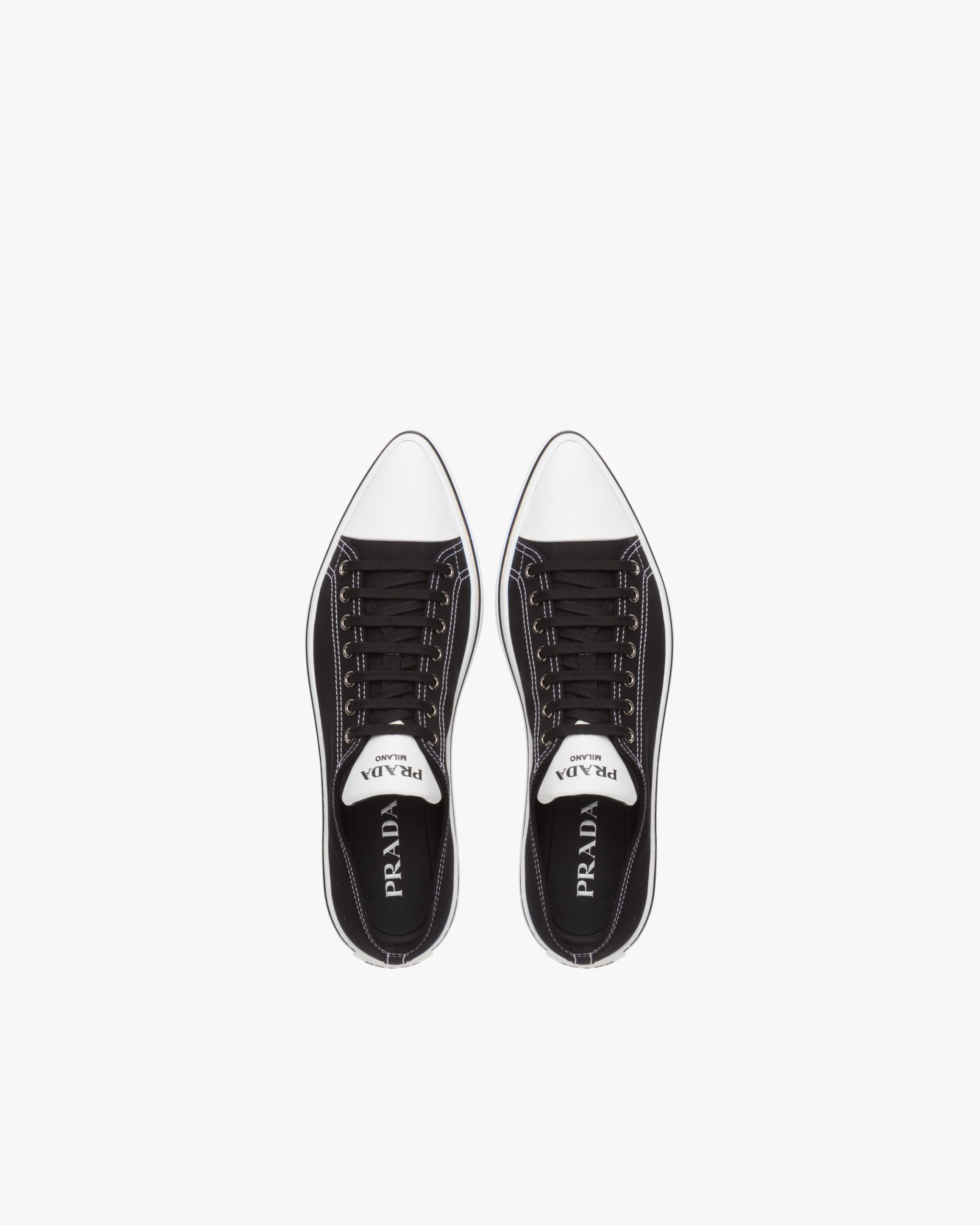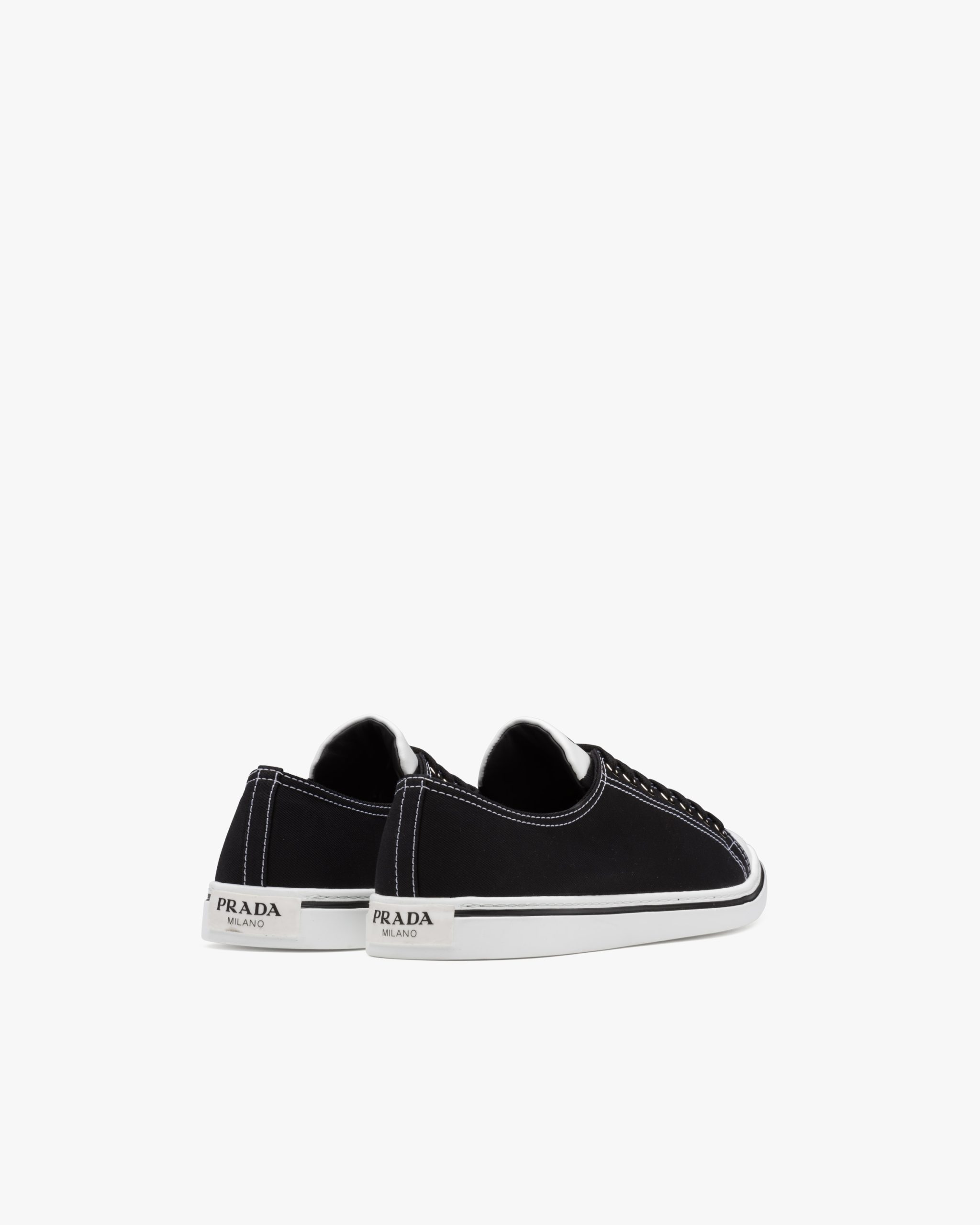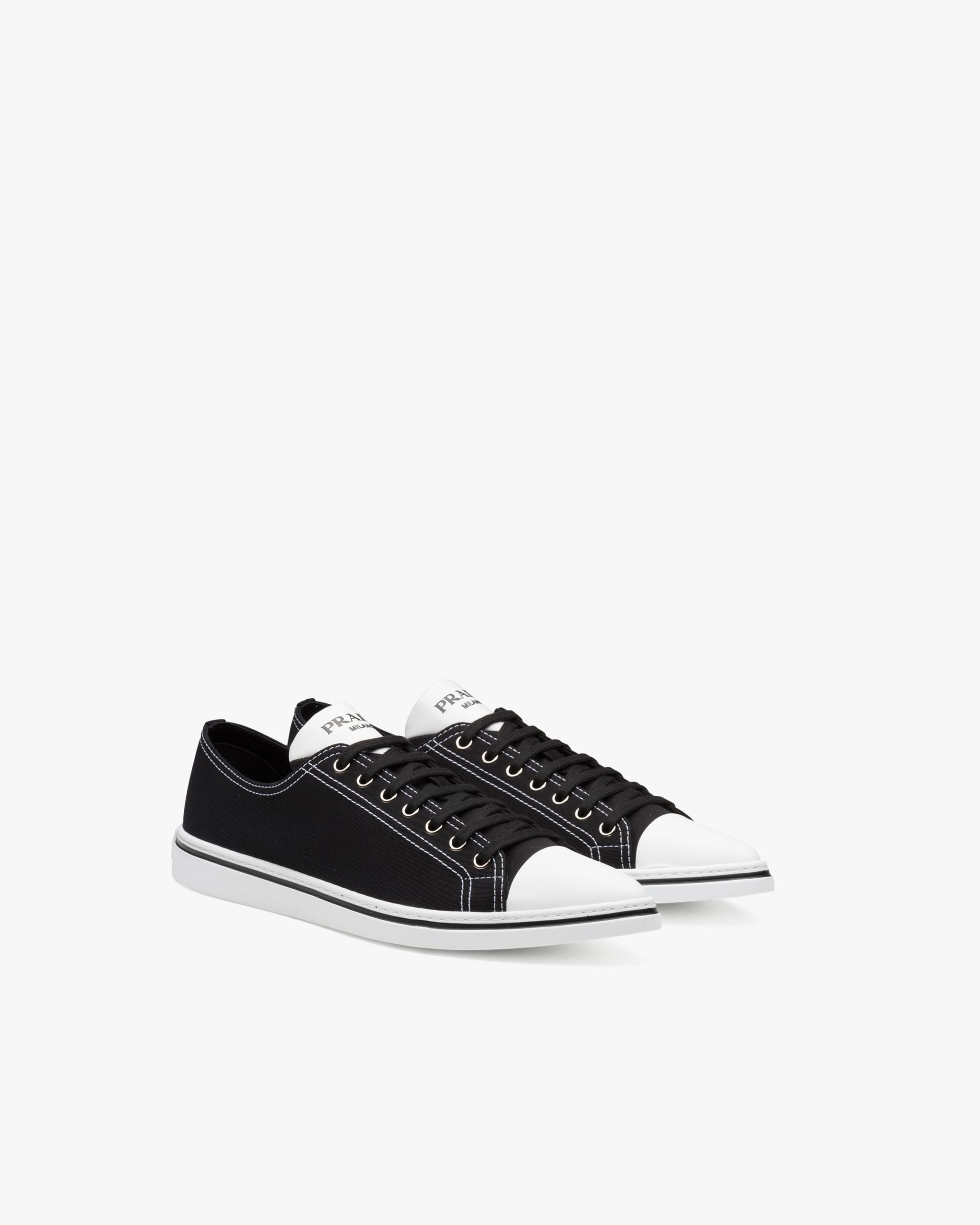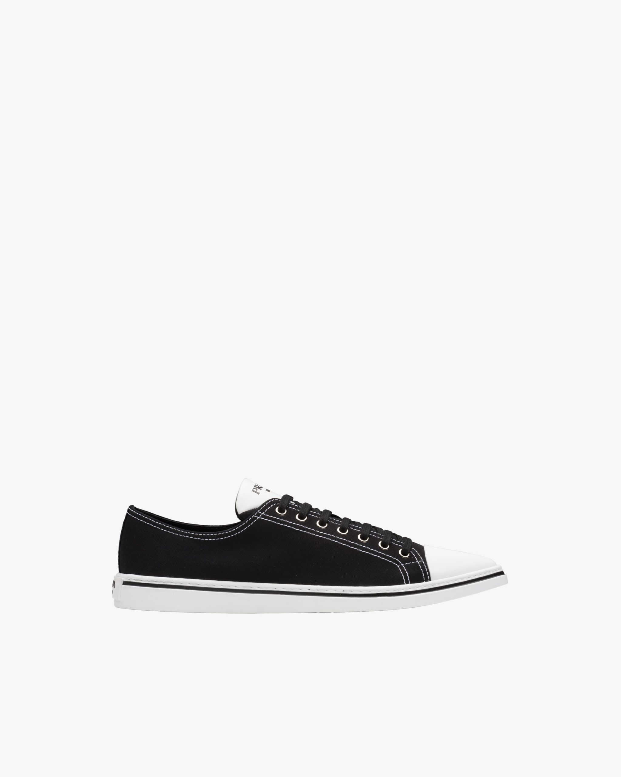 The classic sneaker is re-imagined in this cotton gabardine version with rubber toecap and tapered silhouette, decorated with the Prada logo2 on the tongue.