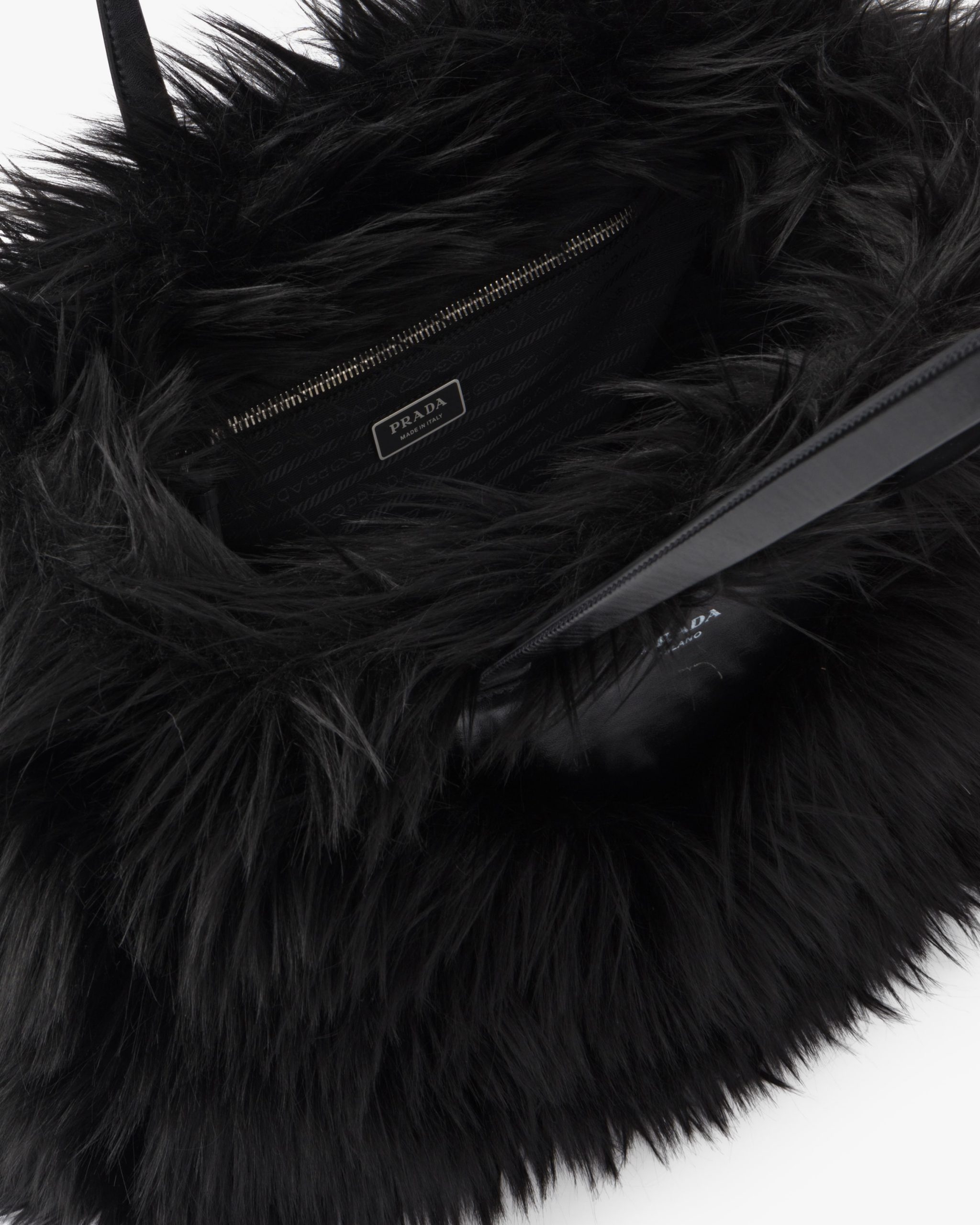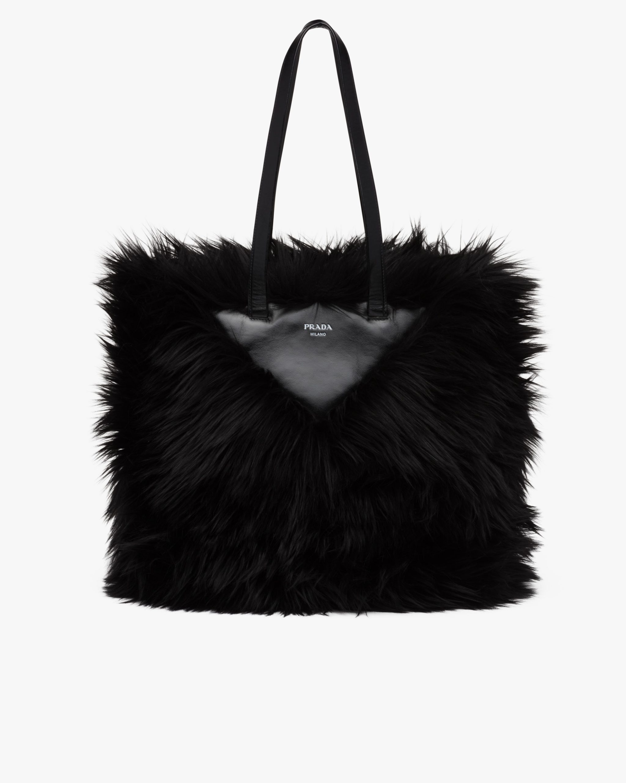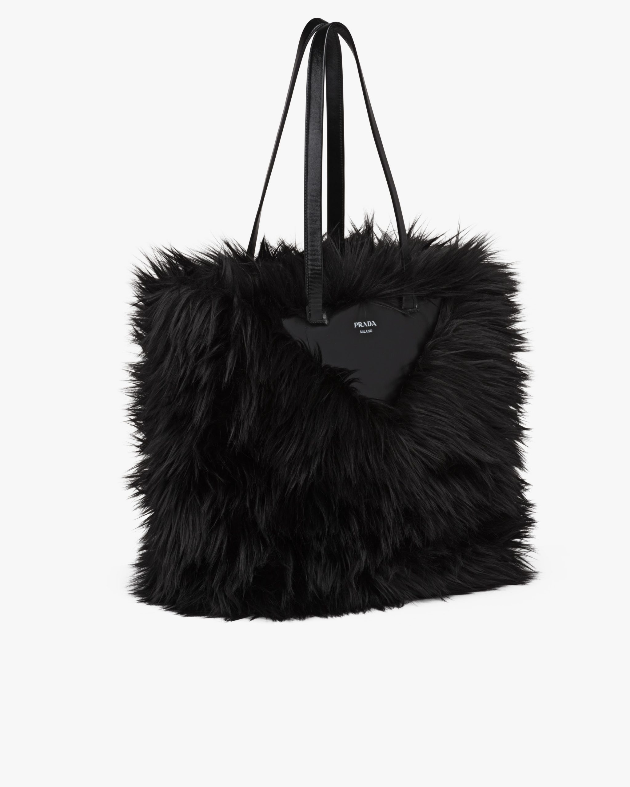 New volumes in soft faux fur fabric characterize this tote bag from the Fall Winter 2021 collectsion where the need for sensations and the pleasure of tactility translate into a panoply of textures and fabrics. The leather triangle with the iconic lettering logo2 that decorates the accessory lengthens to become a double handle.
