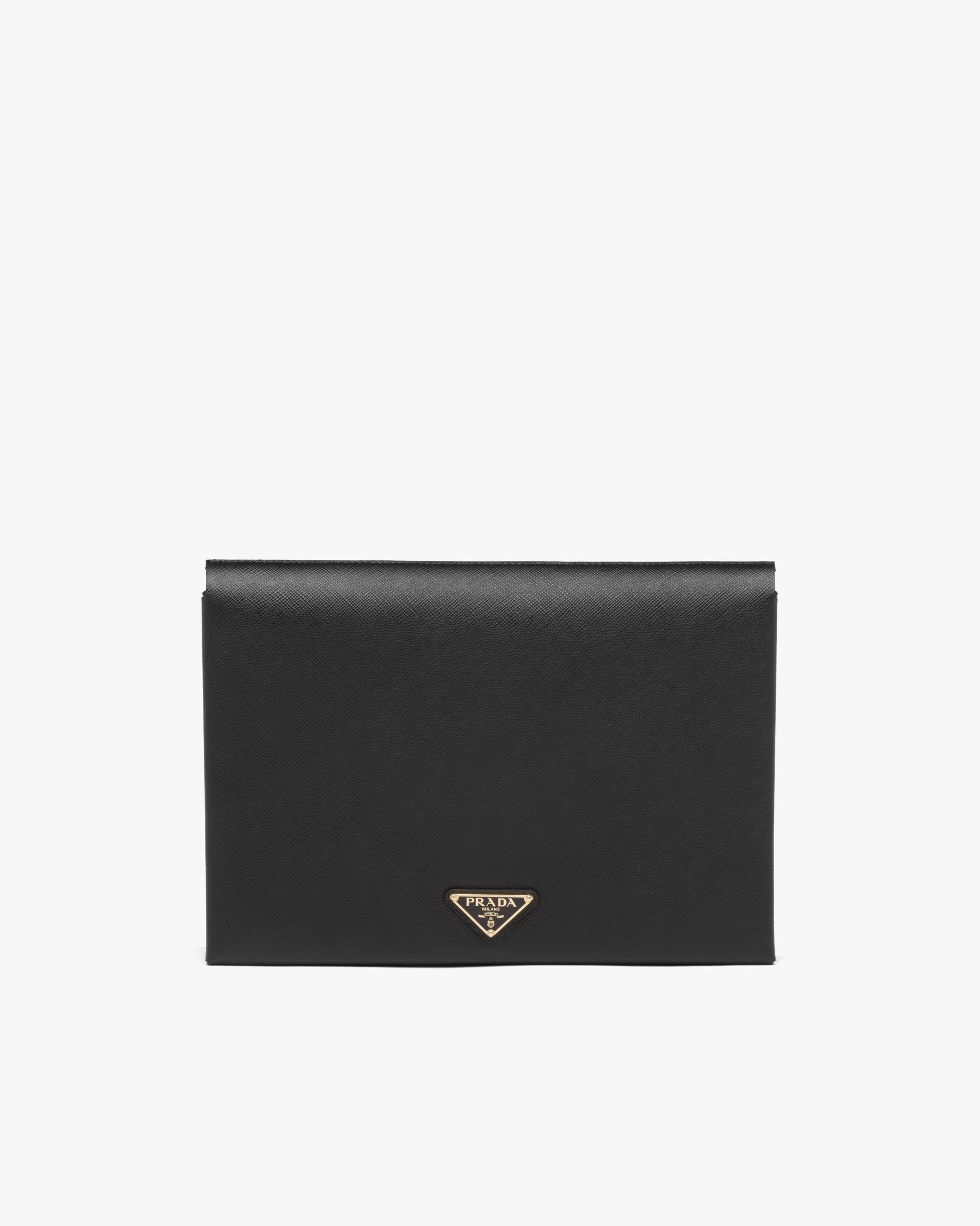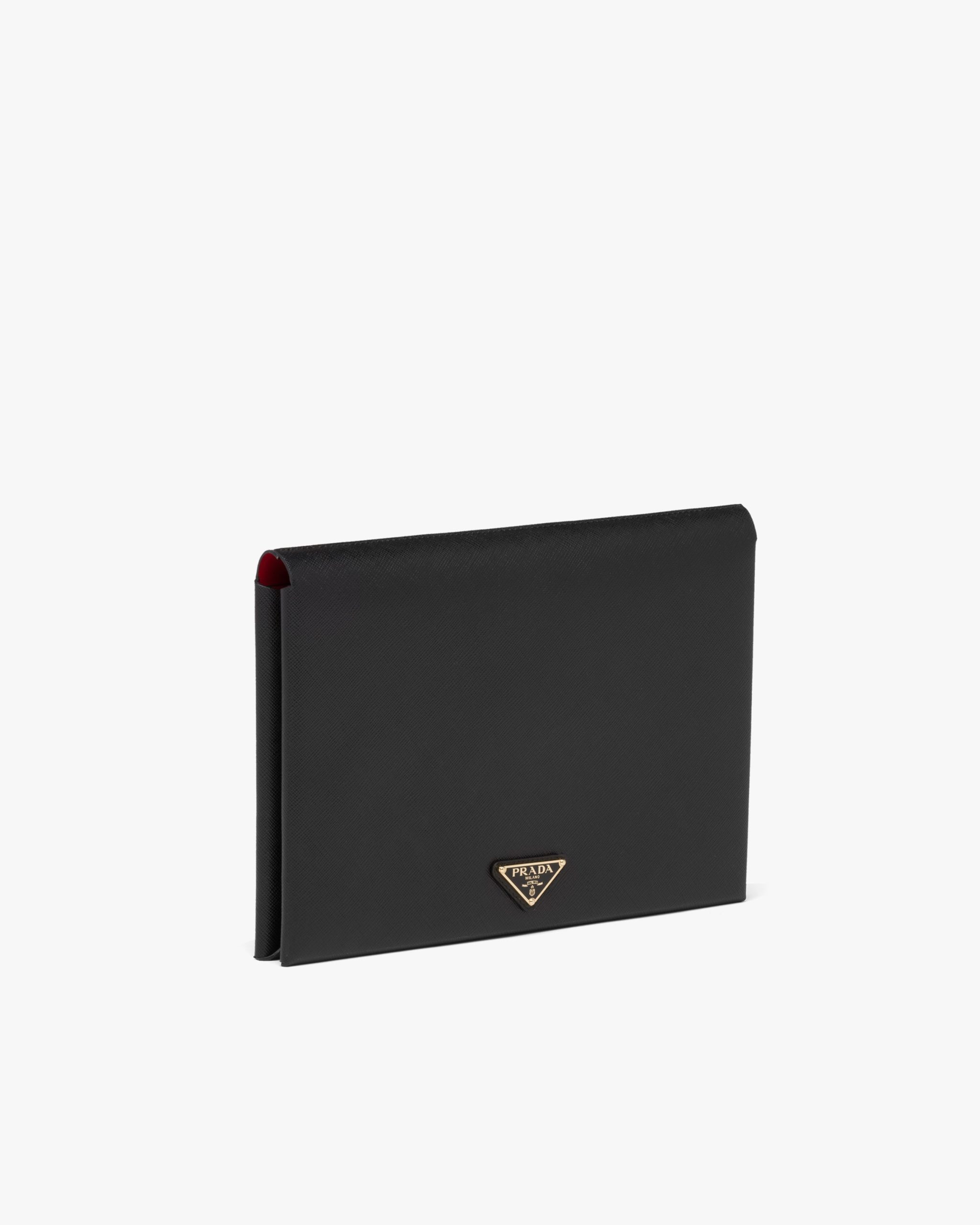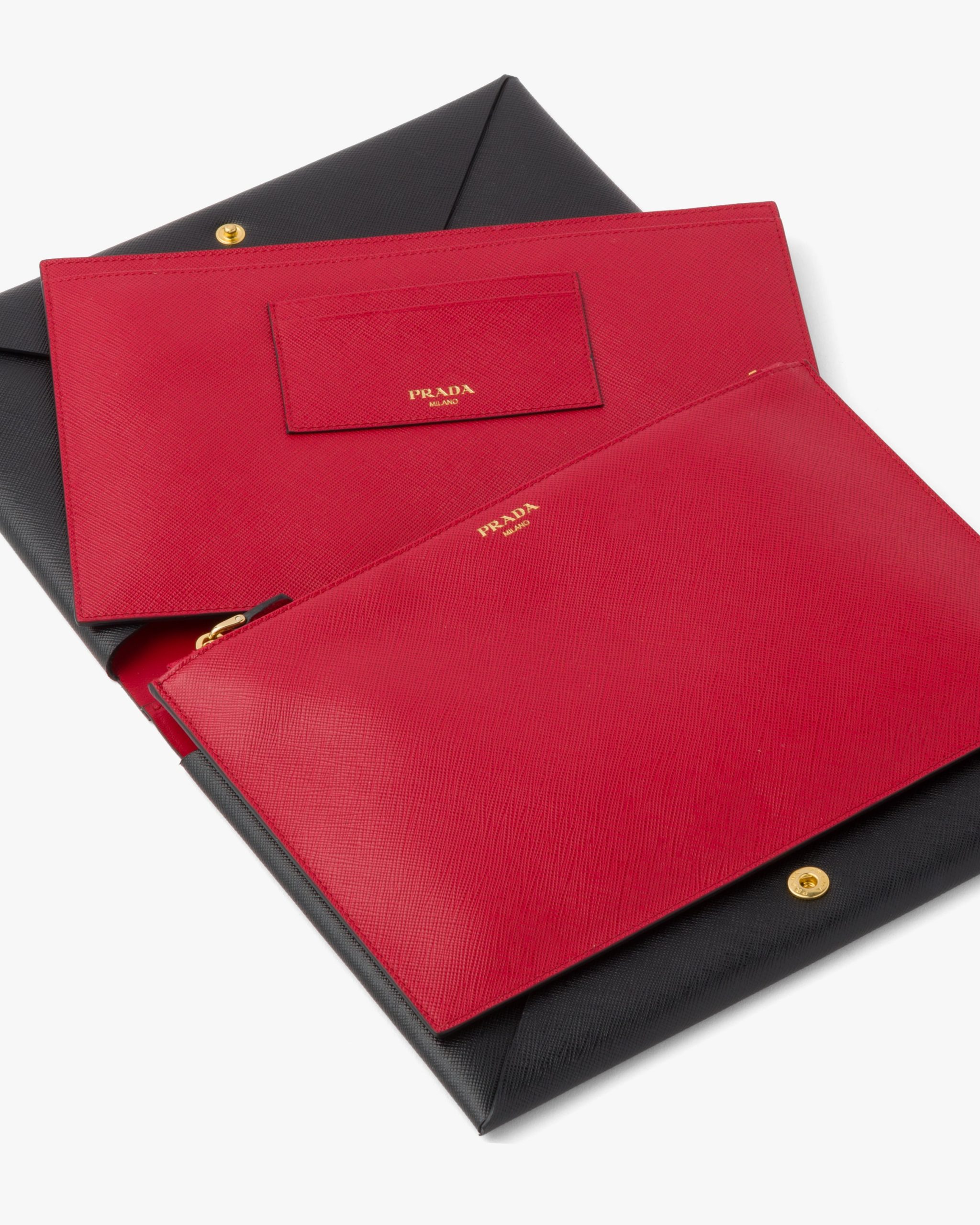 This compact Saffiano document holder is decorated by the logo2 and has a removable internal pouch with zipper and card slots.