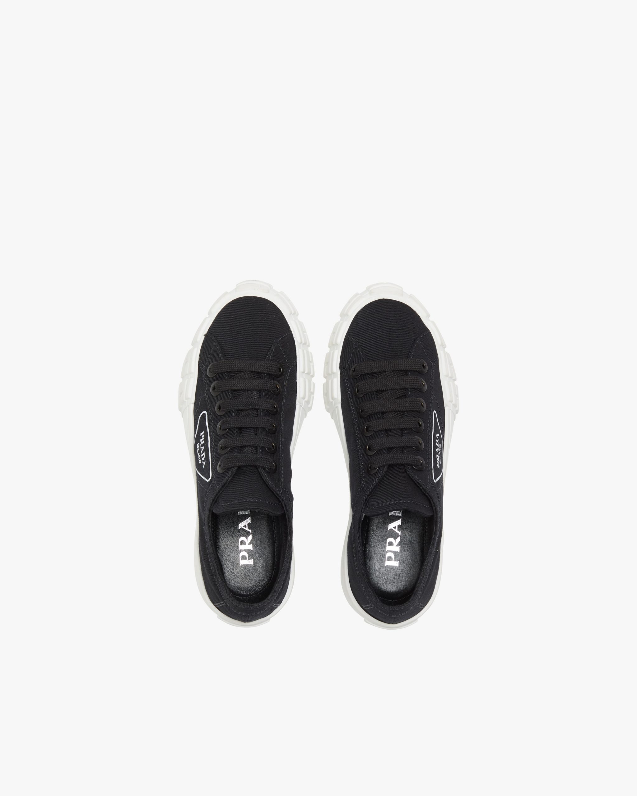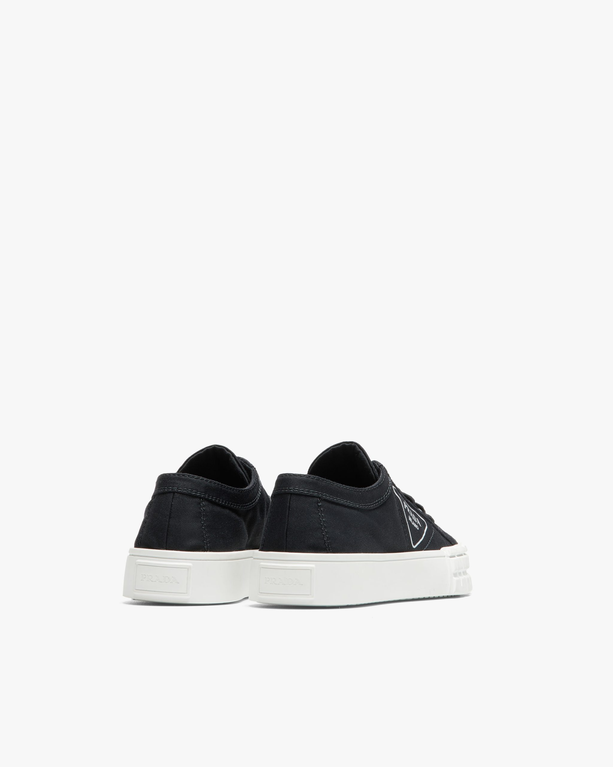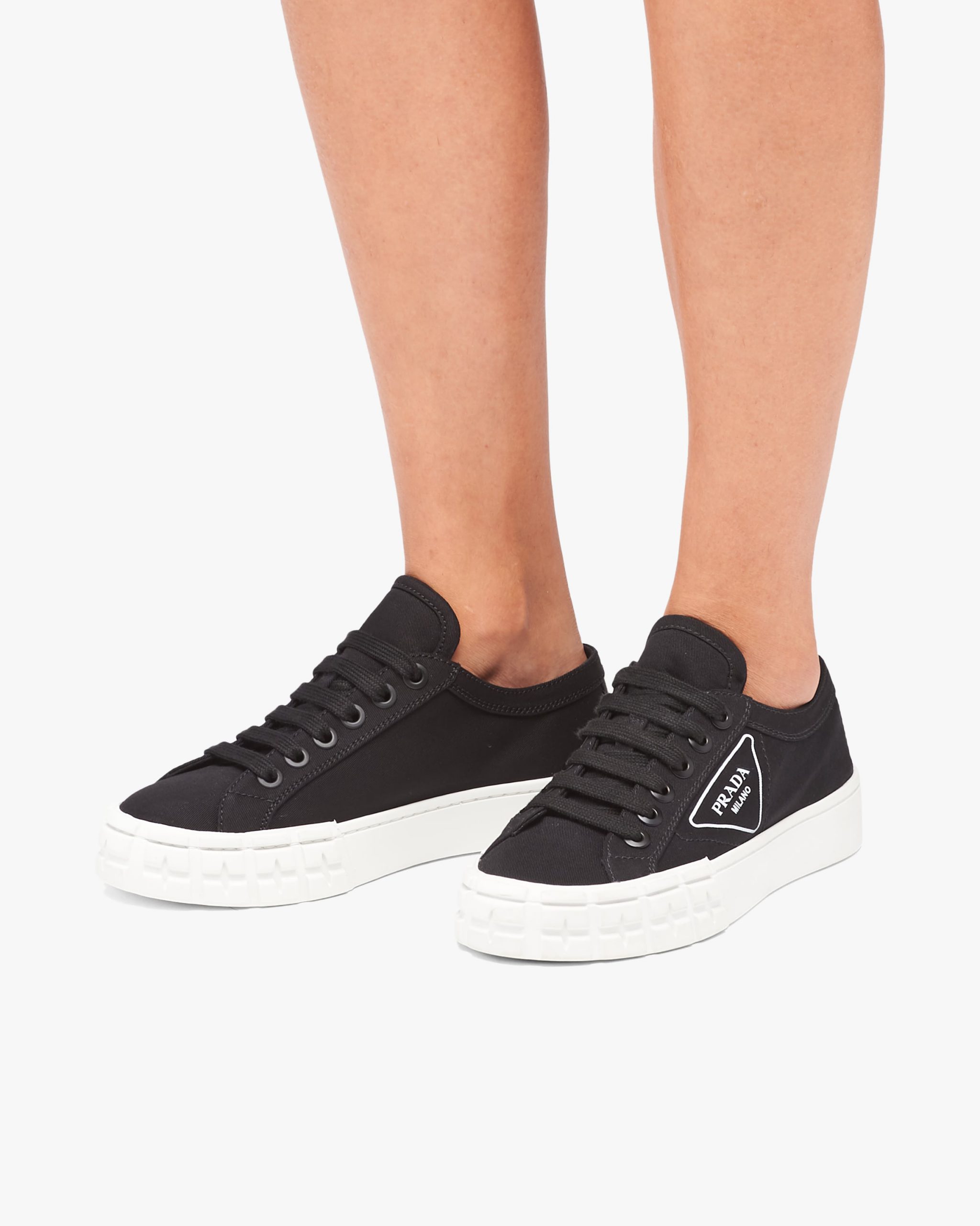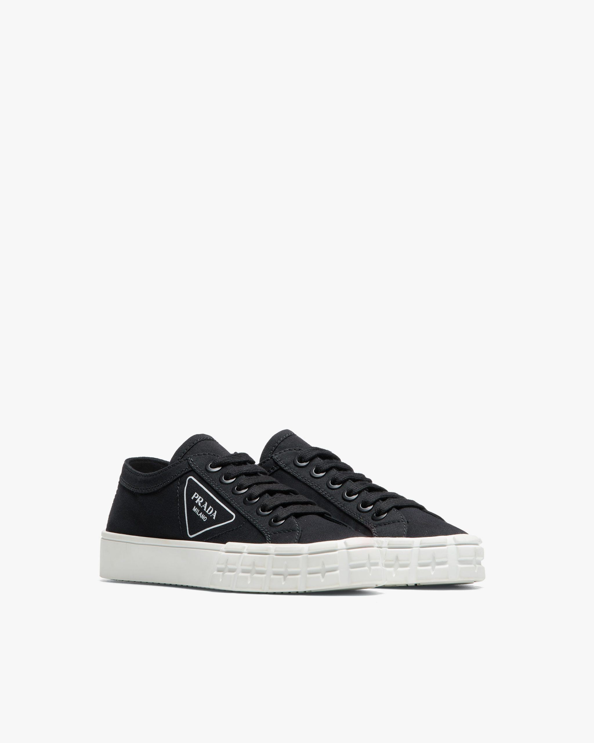 These gabardine fabric sneakers have a rubber sole with an innovative design. They have cotton laces and are decorated with the printed triangle logo2.