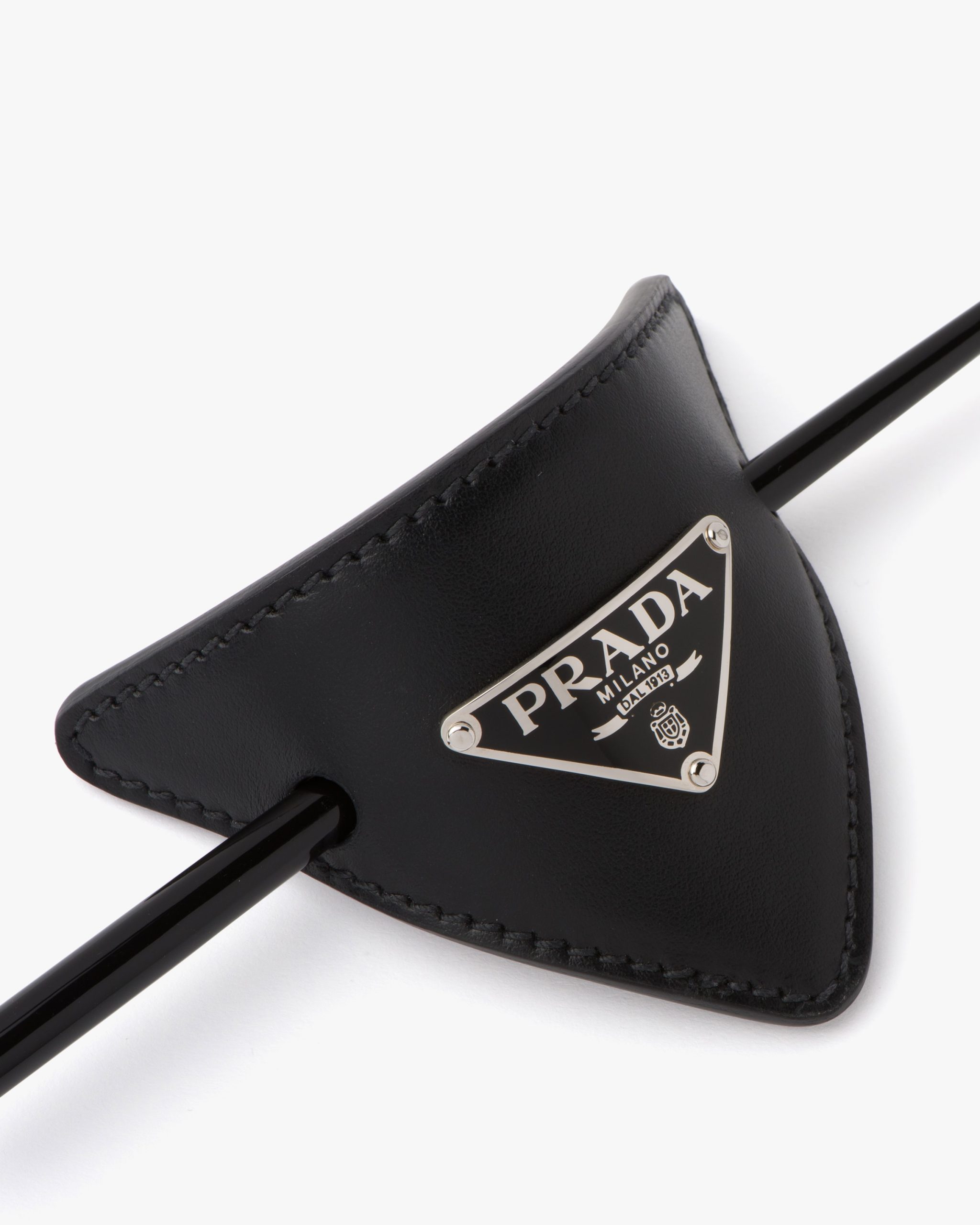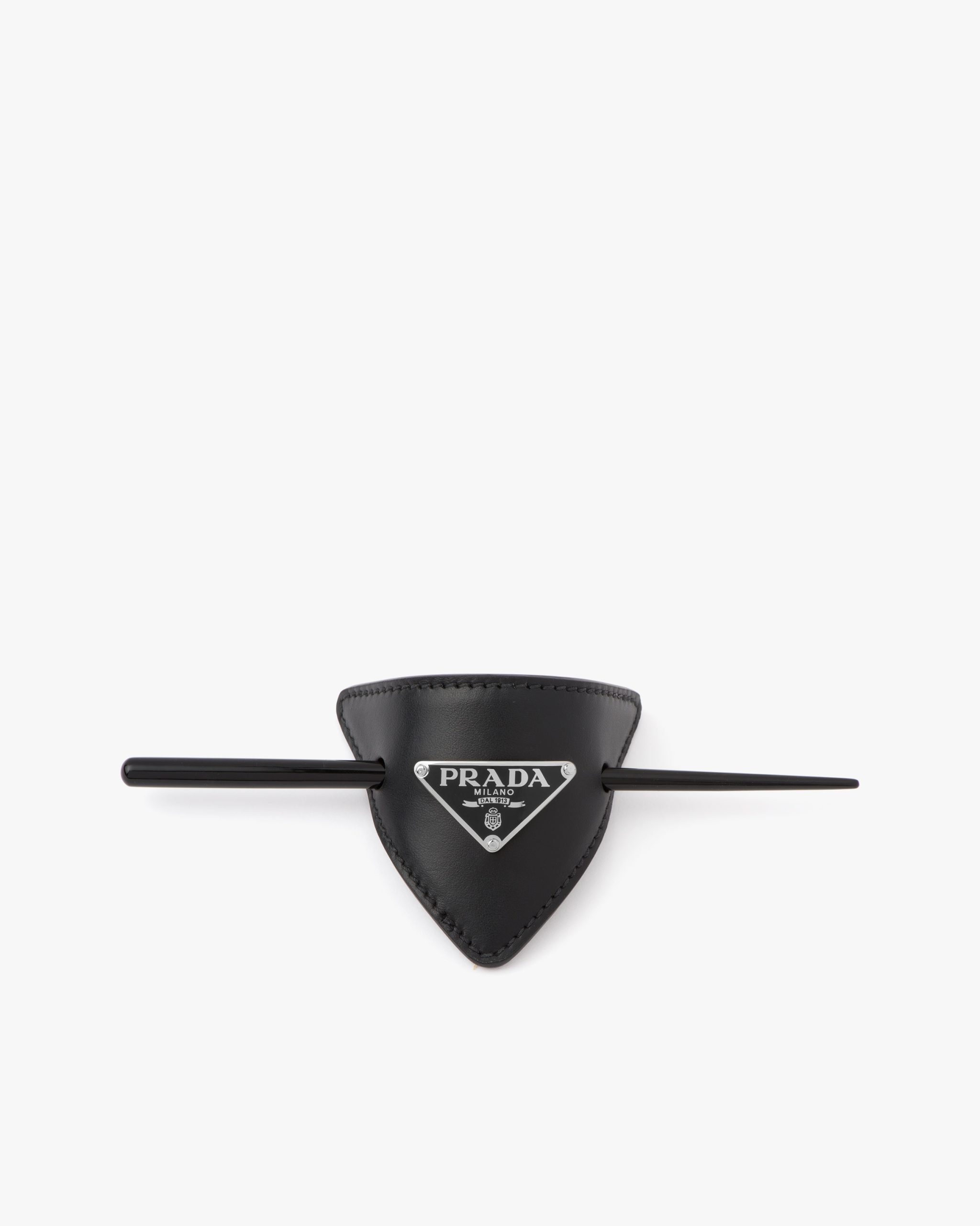 This leather hair clip is decorated with the Prada logo2.