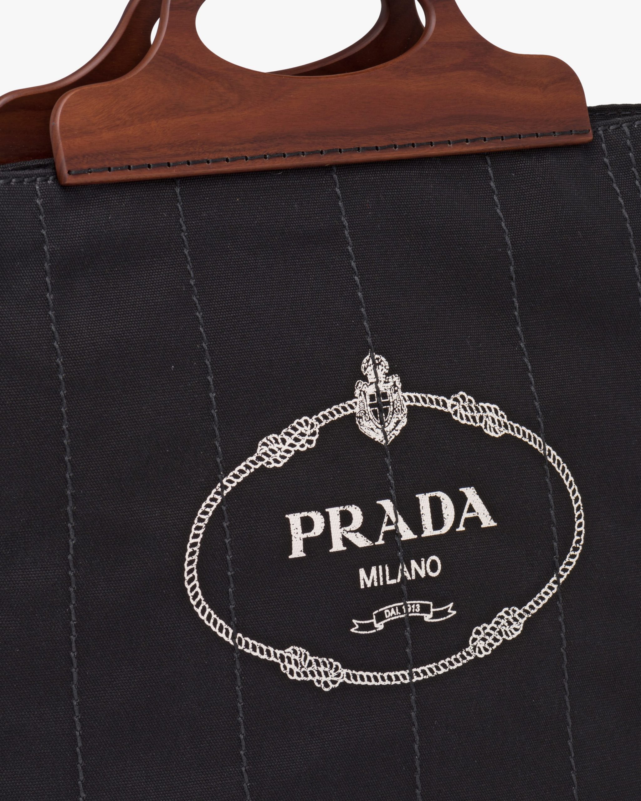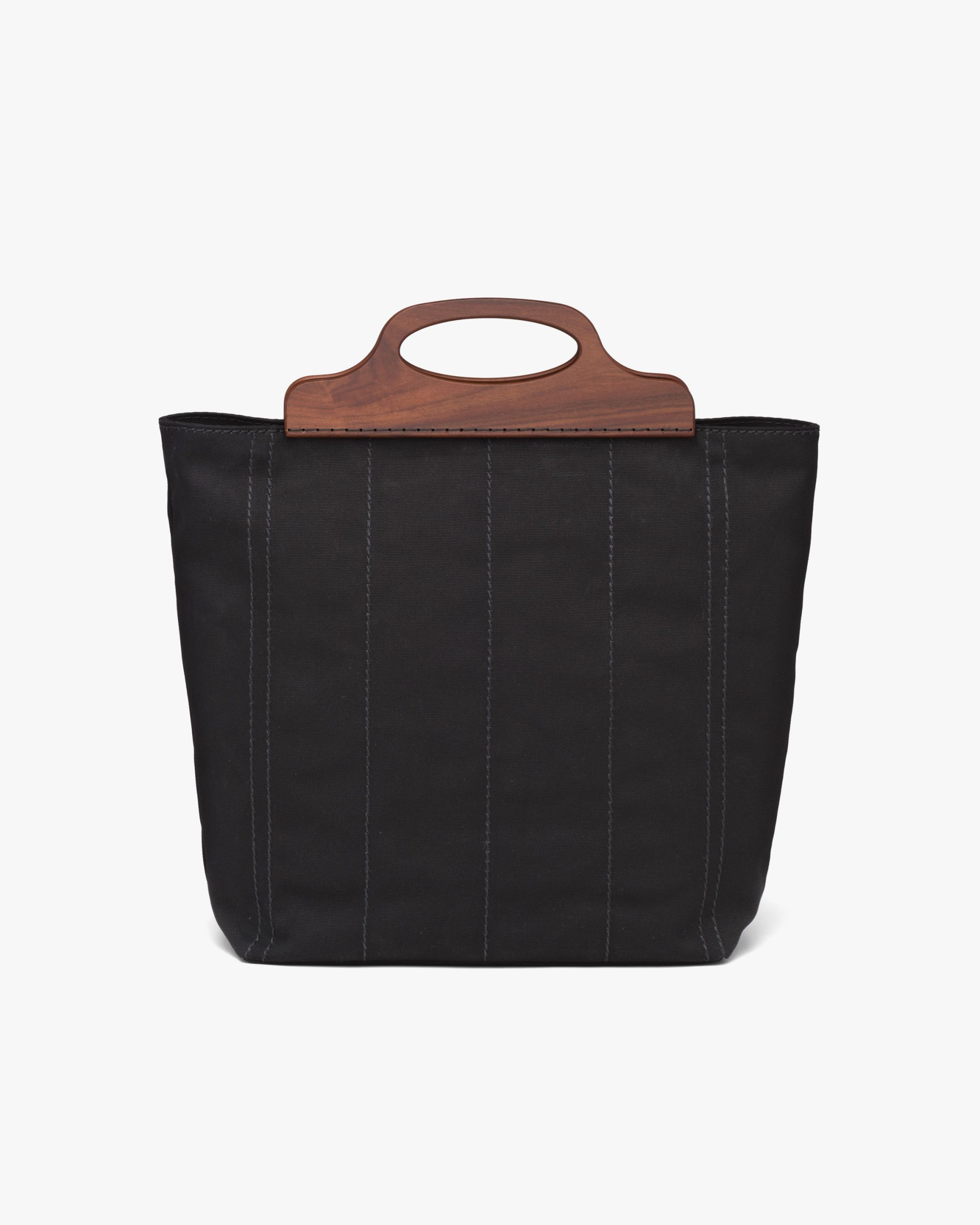 Black Medium Tote in Canvas and Wood