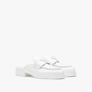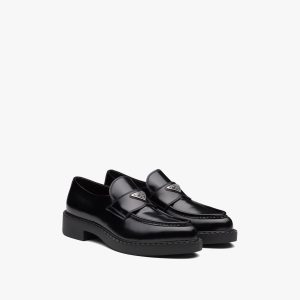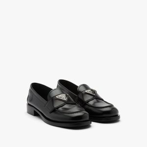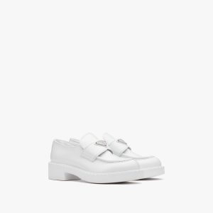 Unique and bold, these loafers emphasize the concept of duality, which is essential in the aesthetics of the brand. The modernist maxi sole with a unique monolithic design creates a dialog with the brushed leather upper featuring a rigorous look and polished finish. A hybrid yet harmonious soul characterizes the Monolith line that combines diametrically opposed images to create a timeless silhouette. The iconic enameled metal triangle logo2 decorates the design.