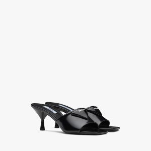 Volume, soft lines and references to the 90s define these sandals on a leather-covered flatform sole. Tubular straps made of soft nappa leather intertwine on the front and are decorated with the Prada logo2.