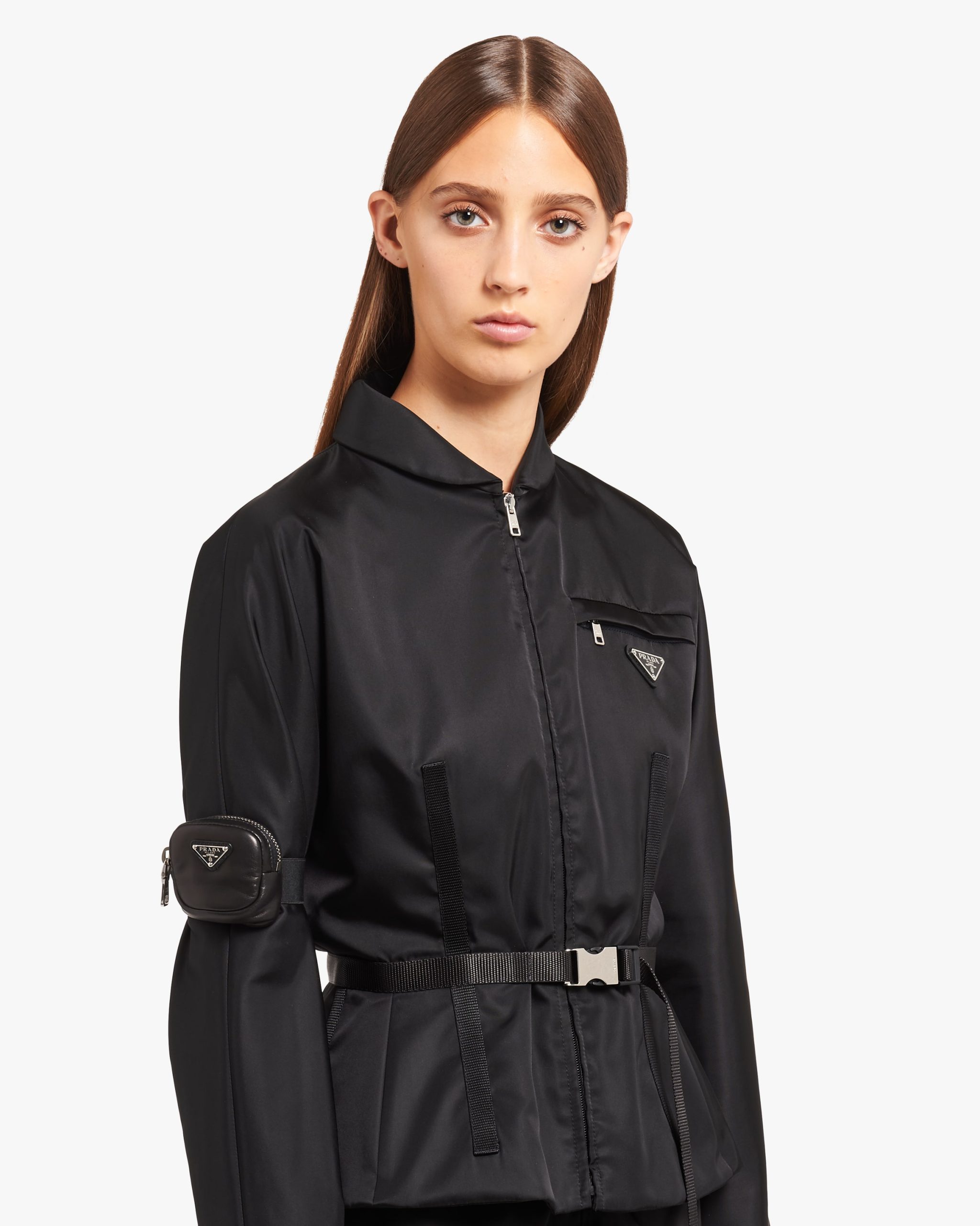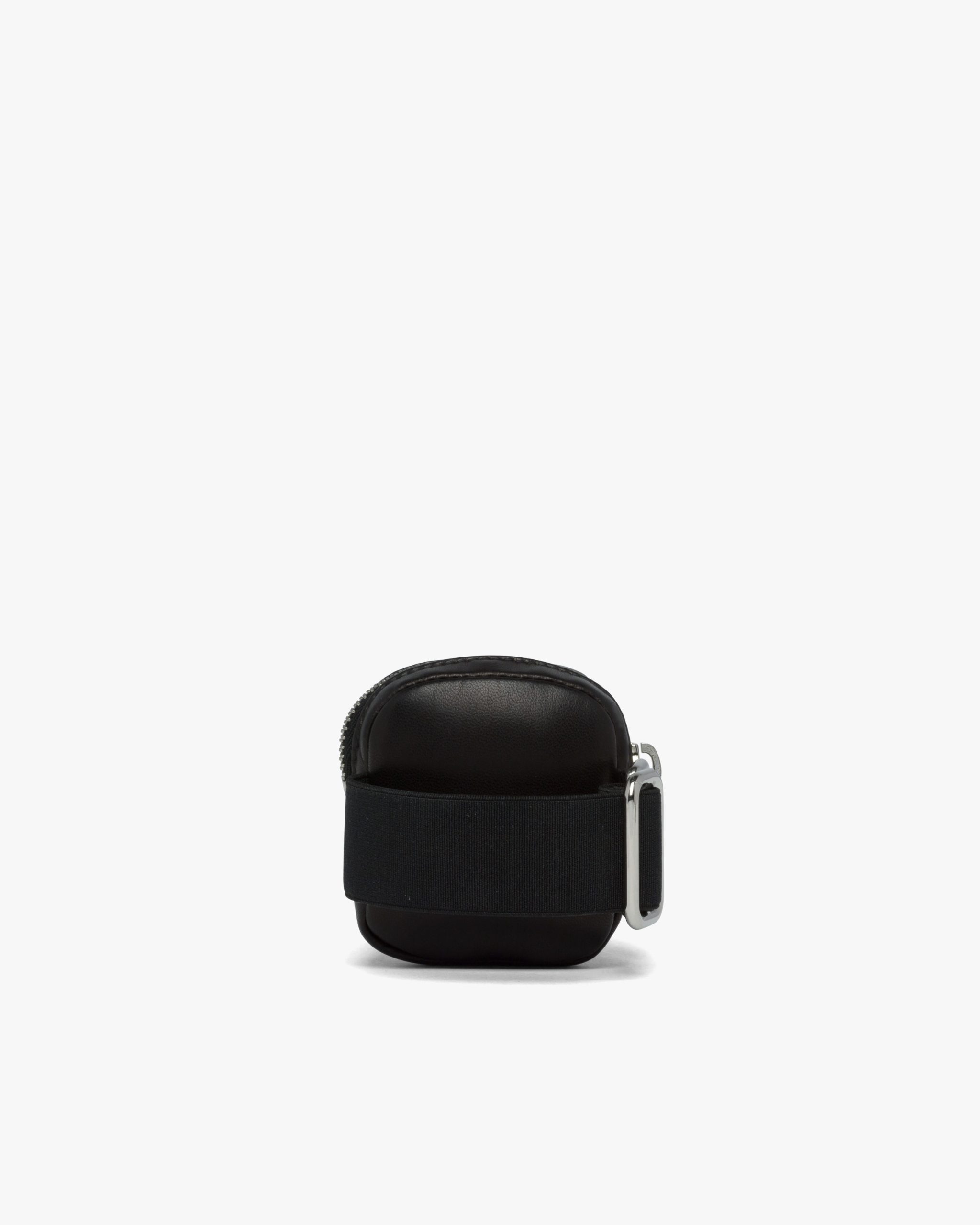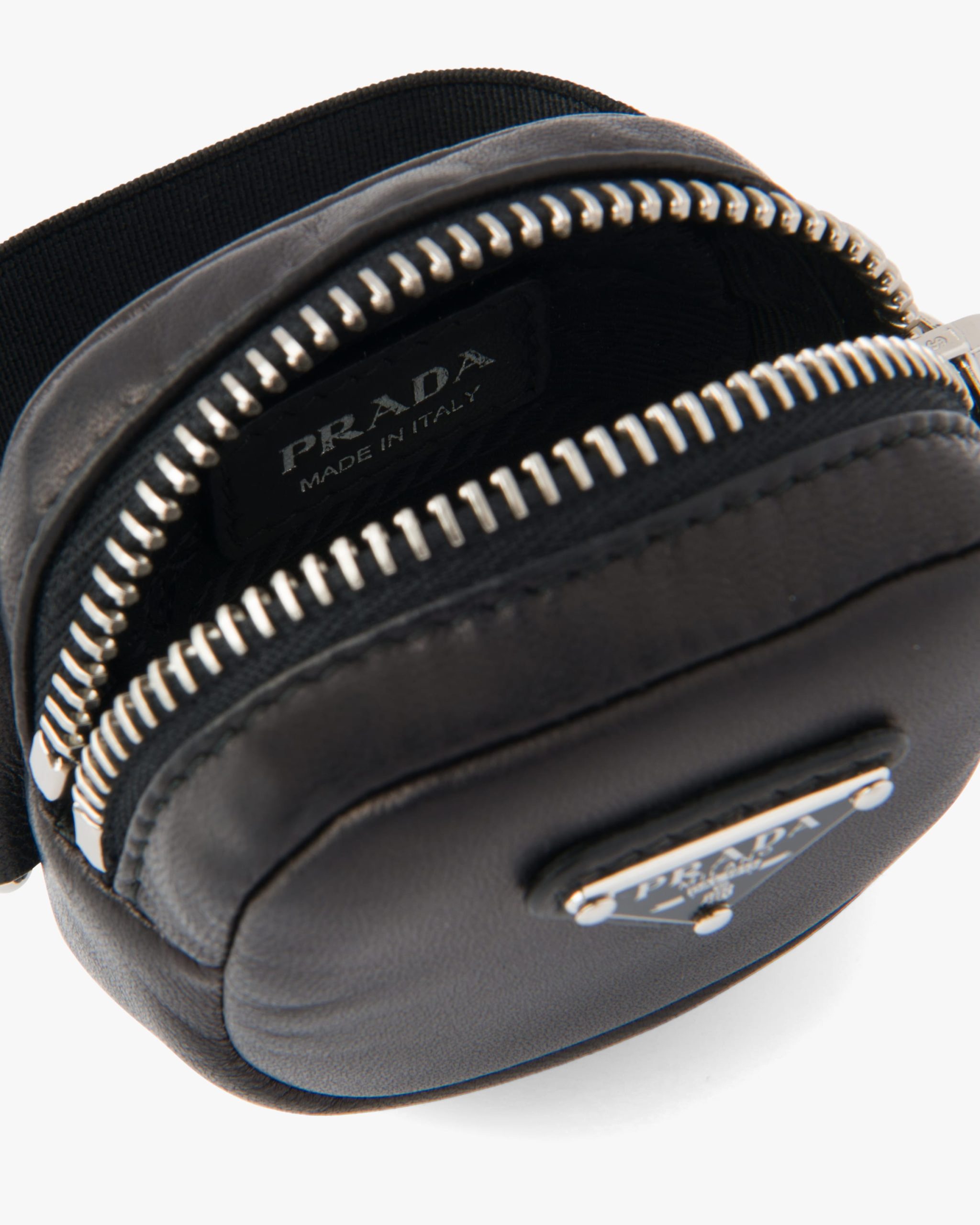 The Fall Winter 2020 collectsion features a series of beautiful accessories inspired by the vanity cases of the 1920s. This modern reinterpretation is made of soft nappa leather and comes with an elasticized band on the back so it can be worn in different ways. The triangle logo2, a hallmark of the brand that first appeared on the trunks designed by Mario Prada, features a luxurious enamel finish.