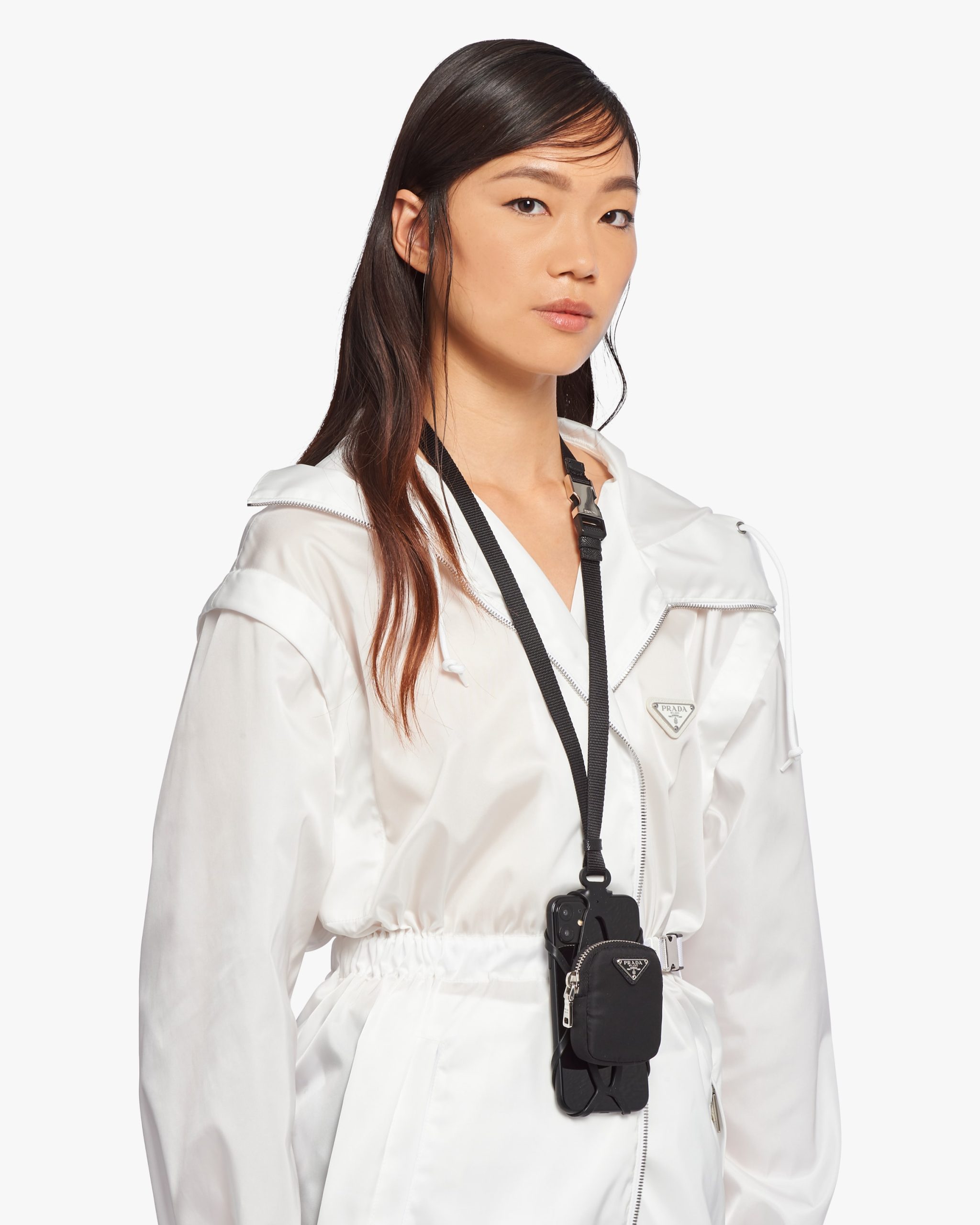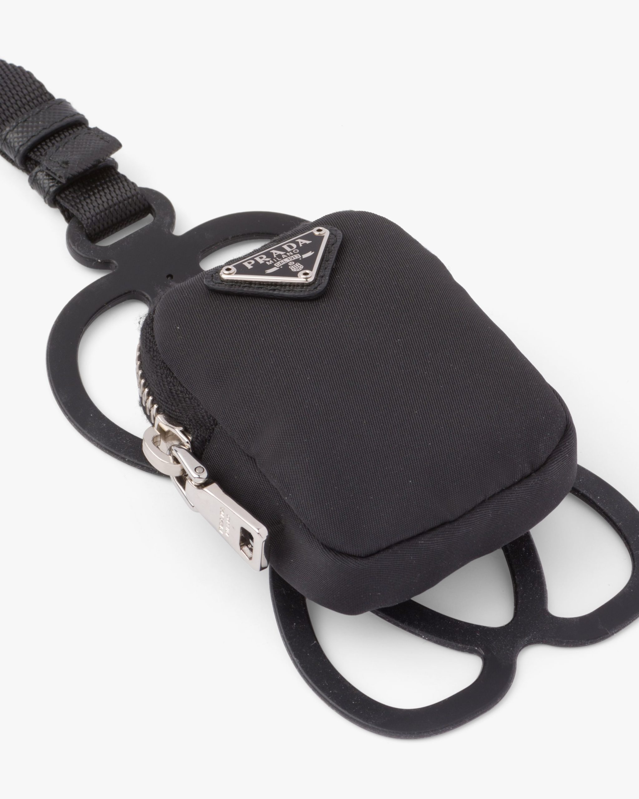 This compact smartphone case in rubber comes with a nylon lanyard worn around the neck. The metal triangle logo2 decorates the accessory.