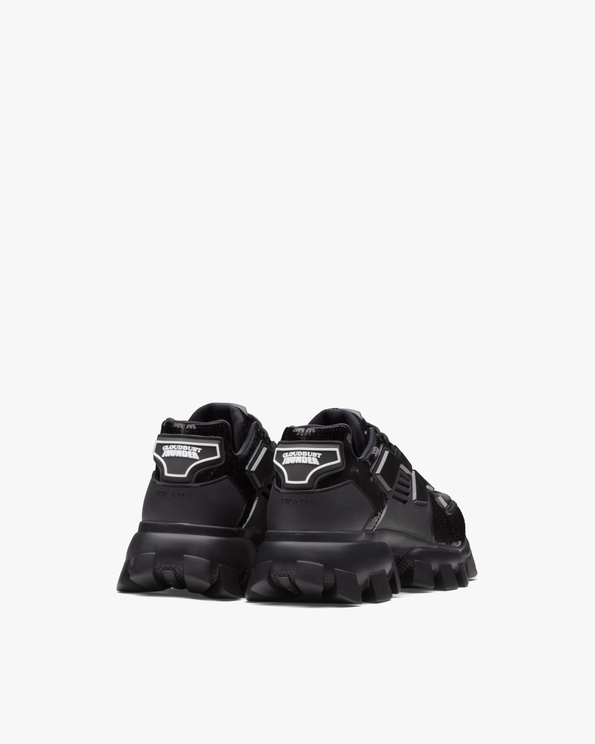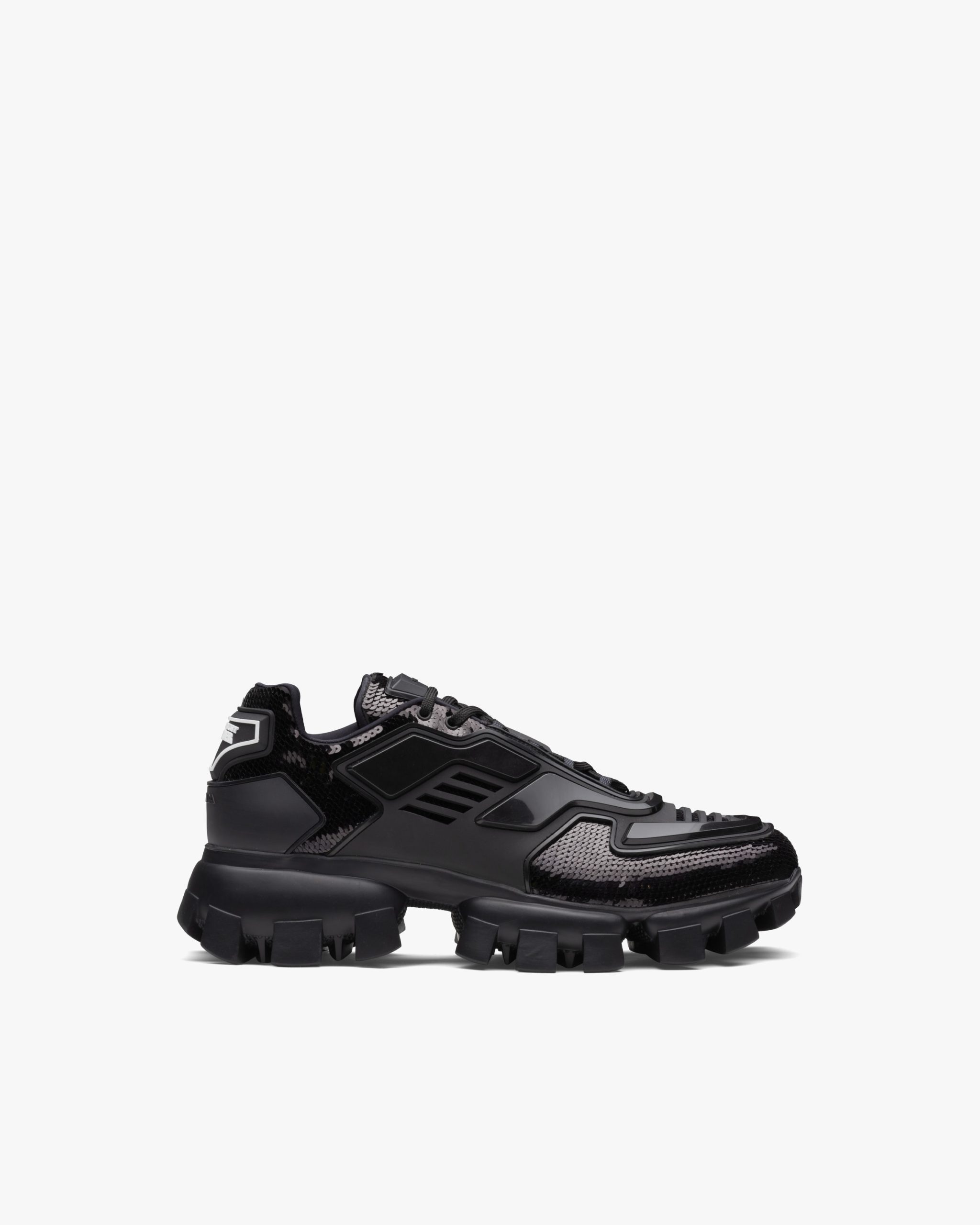 The unusual three-dimensional effect of the upper, created by the injected rubber overlay, characterizes these Cloudbust Thunder sneakers with complex volumes, enhanced by a sea of shiny sequins that embellish the shoe.