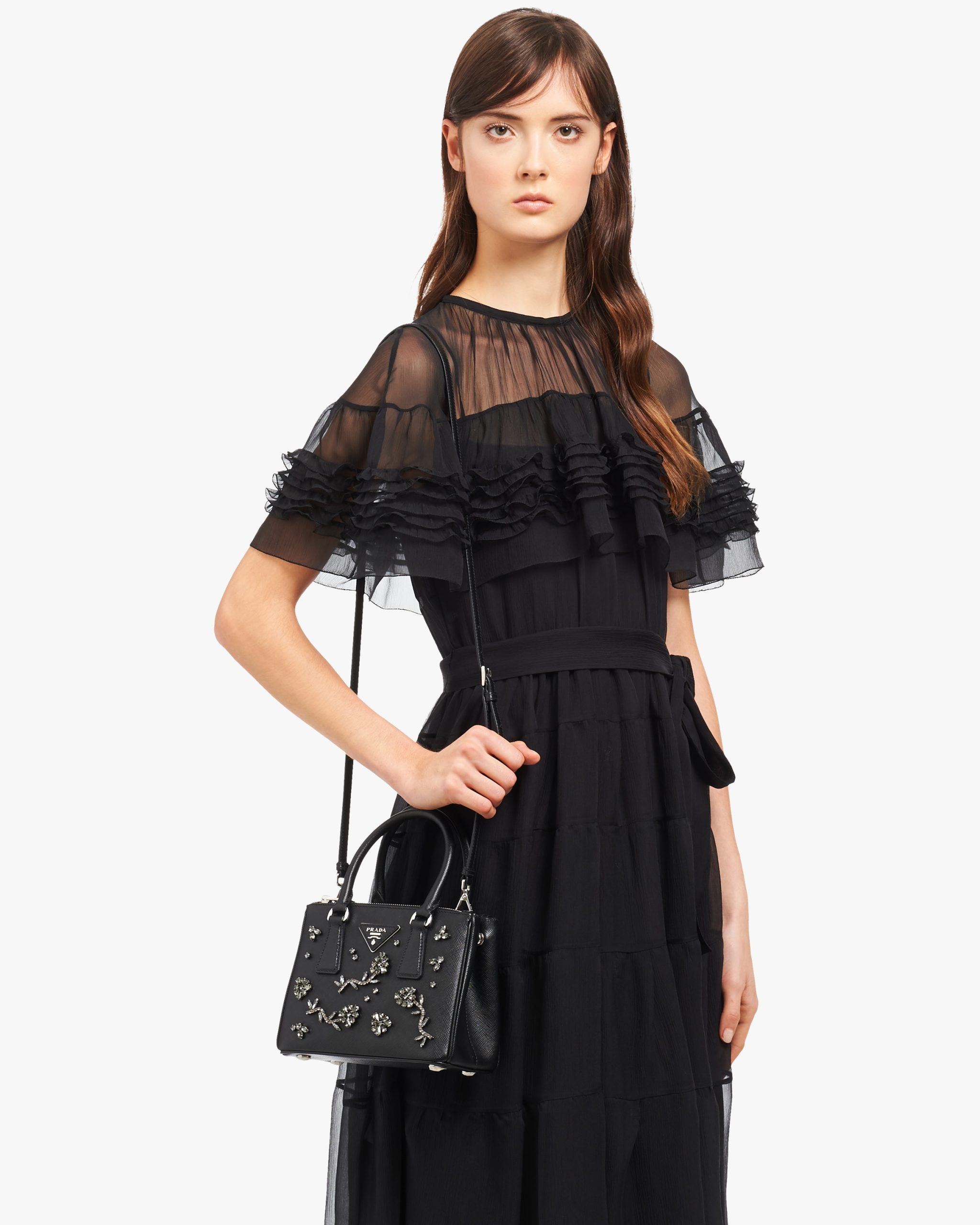 Black Prada Galleria micro-bag with appliques