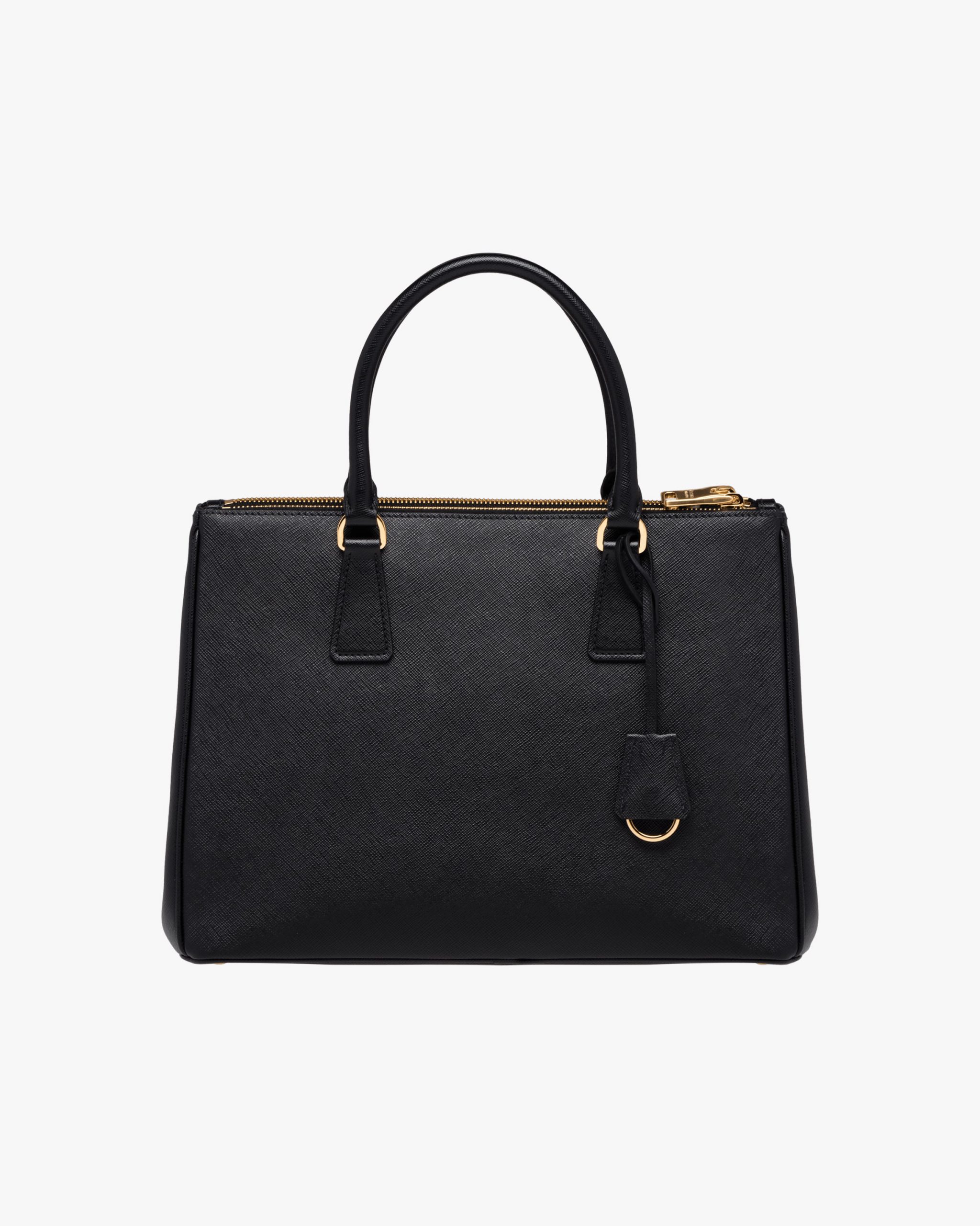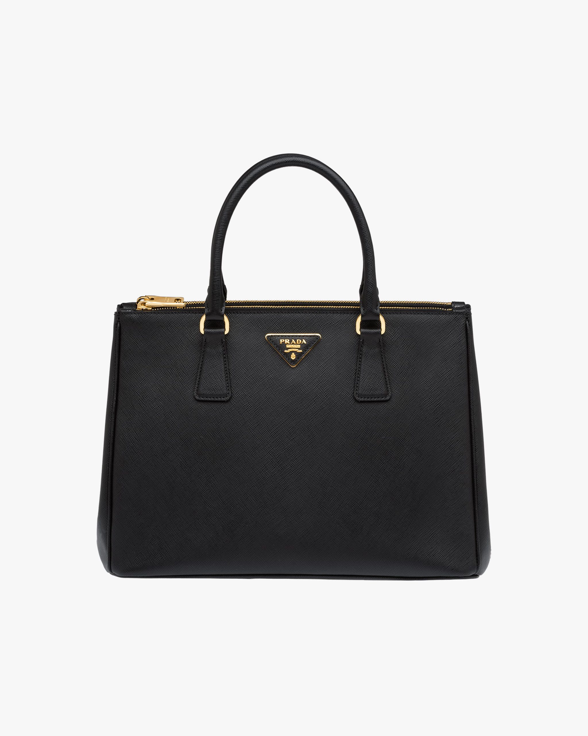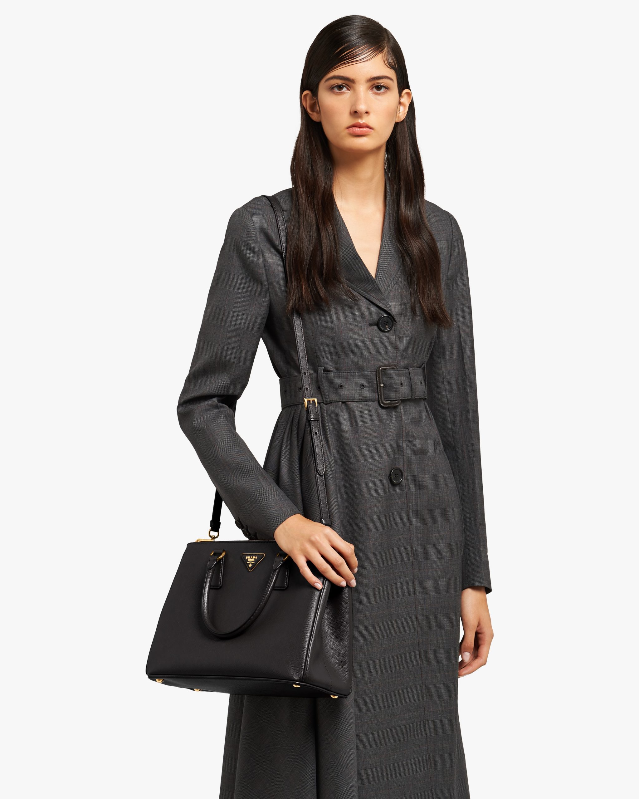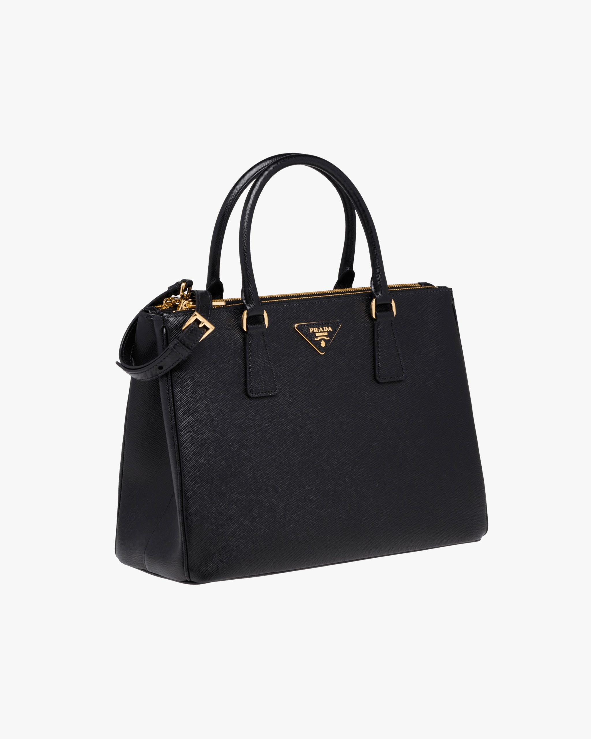 The Prada Galleria bag made of iconic Saffiano leather with a crosshatch texture is characterized by its sophisticated simplicity. The double handle and detachable shoulder strap allow the accessory to be worn as a crossbody bag or handbag. Decorated with the logo2 on a leather triangle and gold-tone metal hardware, the accessory is the quintessence of timeless elegance, bearing the name of the historic Prada store that Mario Prada opened back in 1913 in Galleria Vittorio Emanuele II in Milan.