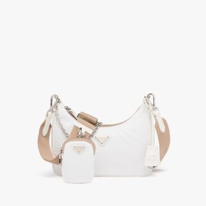 An iconic silhouette and sophisticated details enhance the design: Prada plays with the classic shoulder bag, reinterpreting it in nylon, a distinctive material of the brand. The accessory has a removable case and keychain that make it unique and functional.