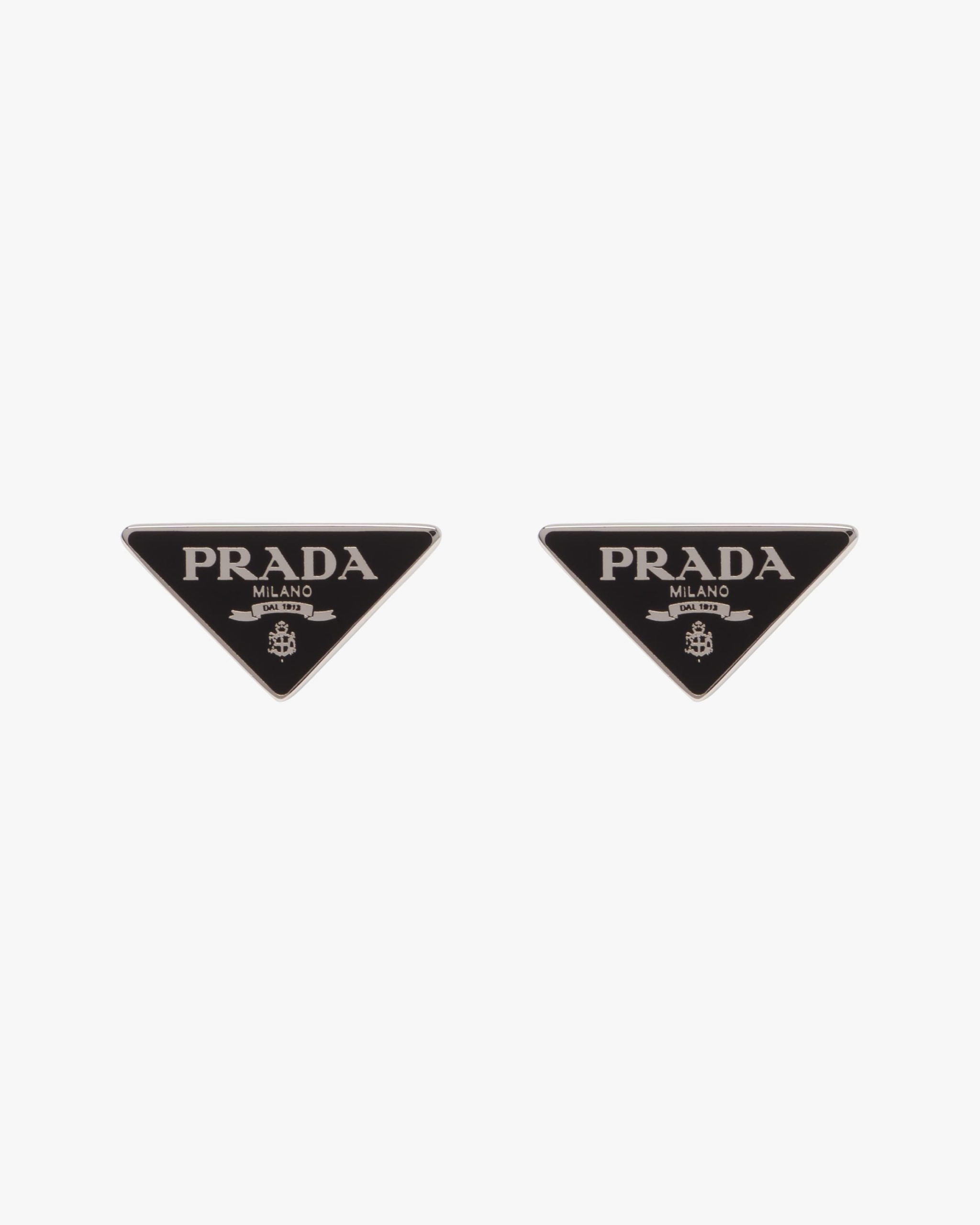 Prada’s historic symbol decorated with enamel defines this pair of earrings. Iconic and sleek, the triangle logo2 is the protagonist of a new line of jewelry made of 925 sterling silver that reinterprets punk influences in a modern way.