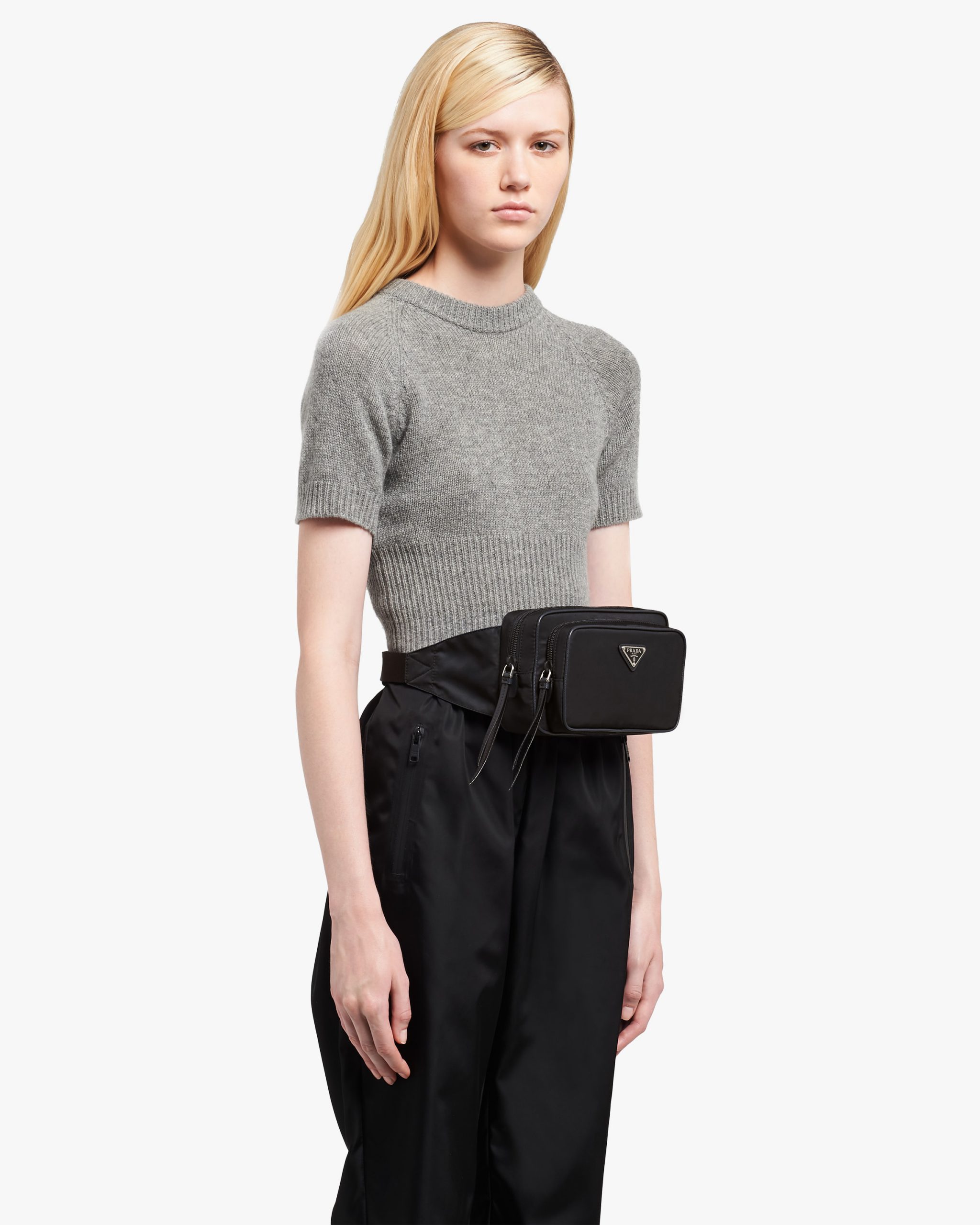 Made of Prada’s sustainable Re-Nylon produced from recycled plastic materials collectsed in the ocean, this versatile belt bag with a sleek design is enhanced by the leather zipper pull in a matching color and the triangle logo2 on the front. The fabric belt is adjustable.