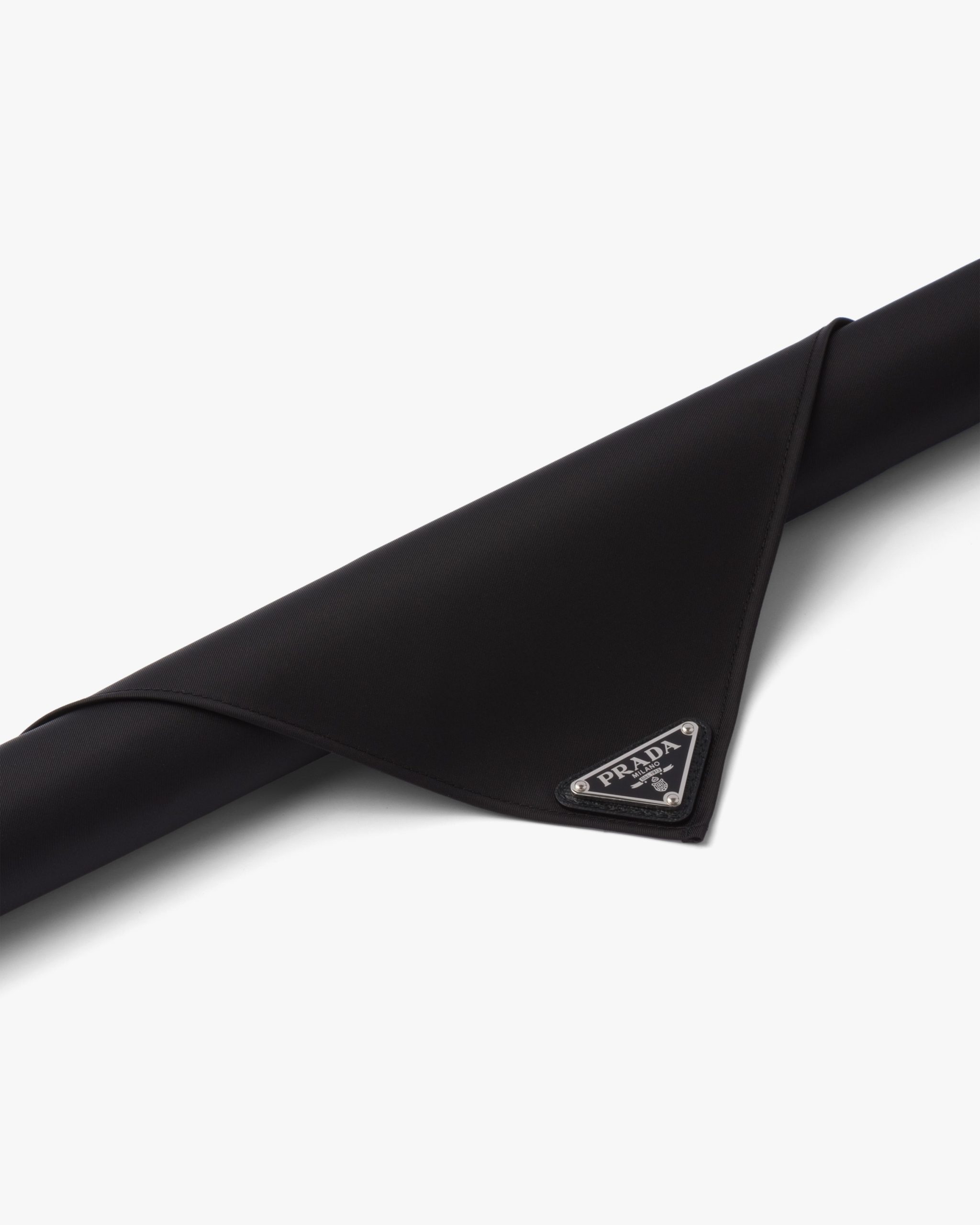 Re-Nylon, a technologically innovative fabric produced from recycled, purified plastic collectsed in the ocean, adds a contemporary note to a classic accessory like this foulard decorated with Prada’s emblematic triangle logo2.