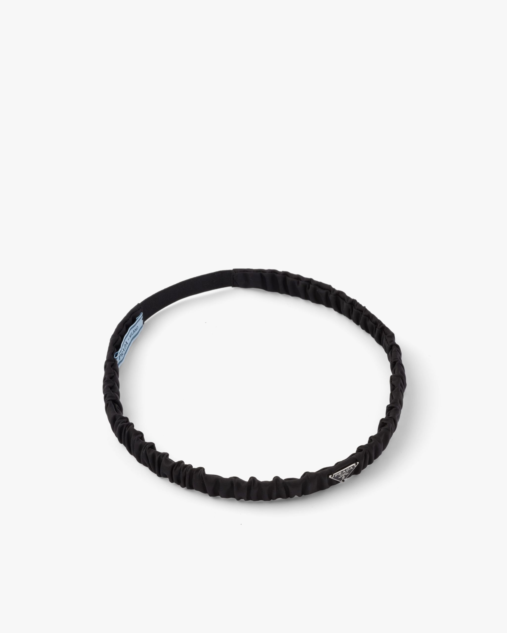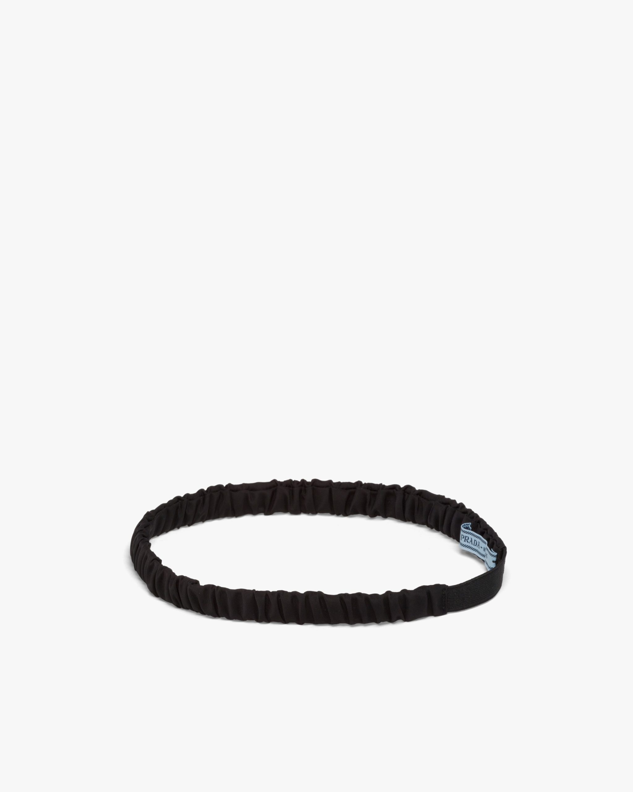 This headband, a sophisticated accessory reimagined with technical charm, is made of Re-Nylon: regenerated nylon yarn (ECONYL?)produced from recycled, purified plastic trash collectsed in the ocean, fishing nets and textile waste fibers.