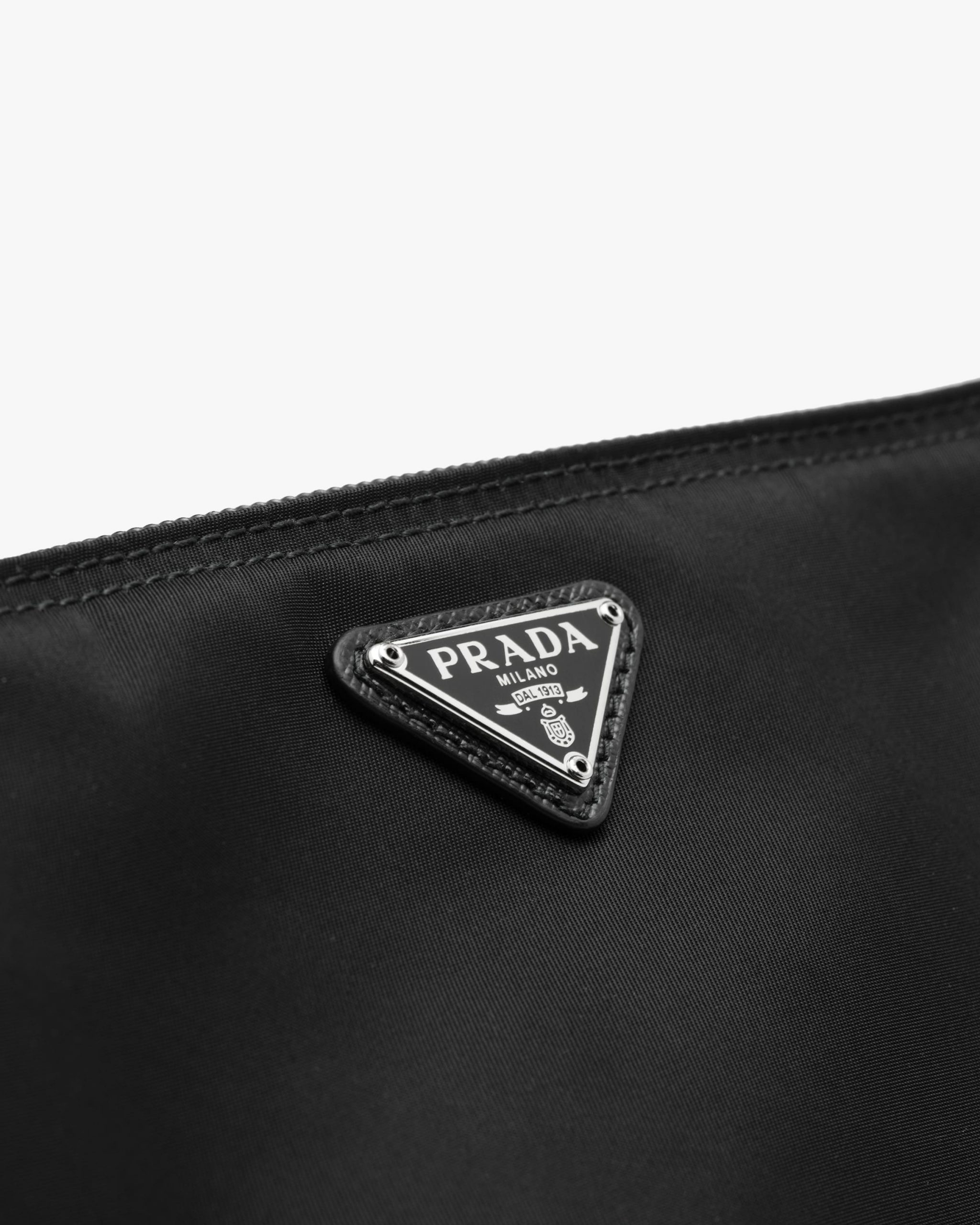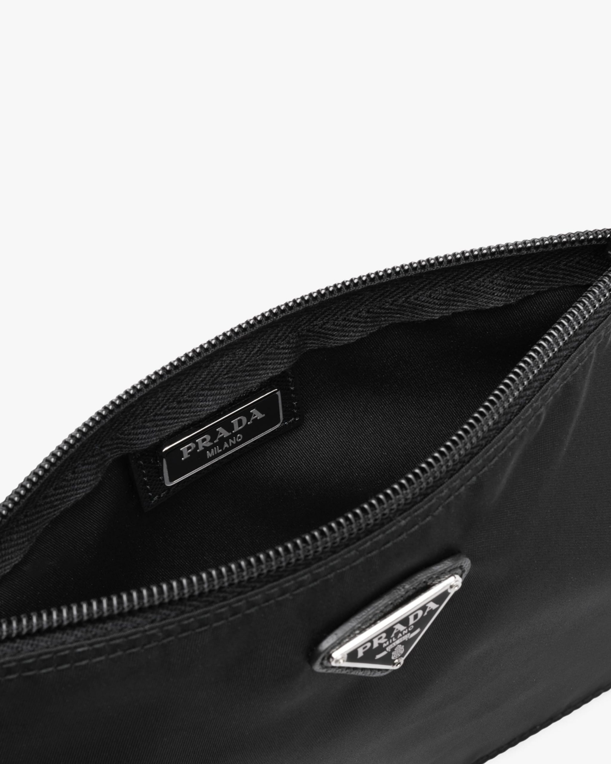 Characterized by a sleek line and emphasized by the iconic enameled metal triangle logo2, this pouch is made of Prada’s innovative Re-Nylon fabric produced from recycled plastic materials collectsed in the ocean.