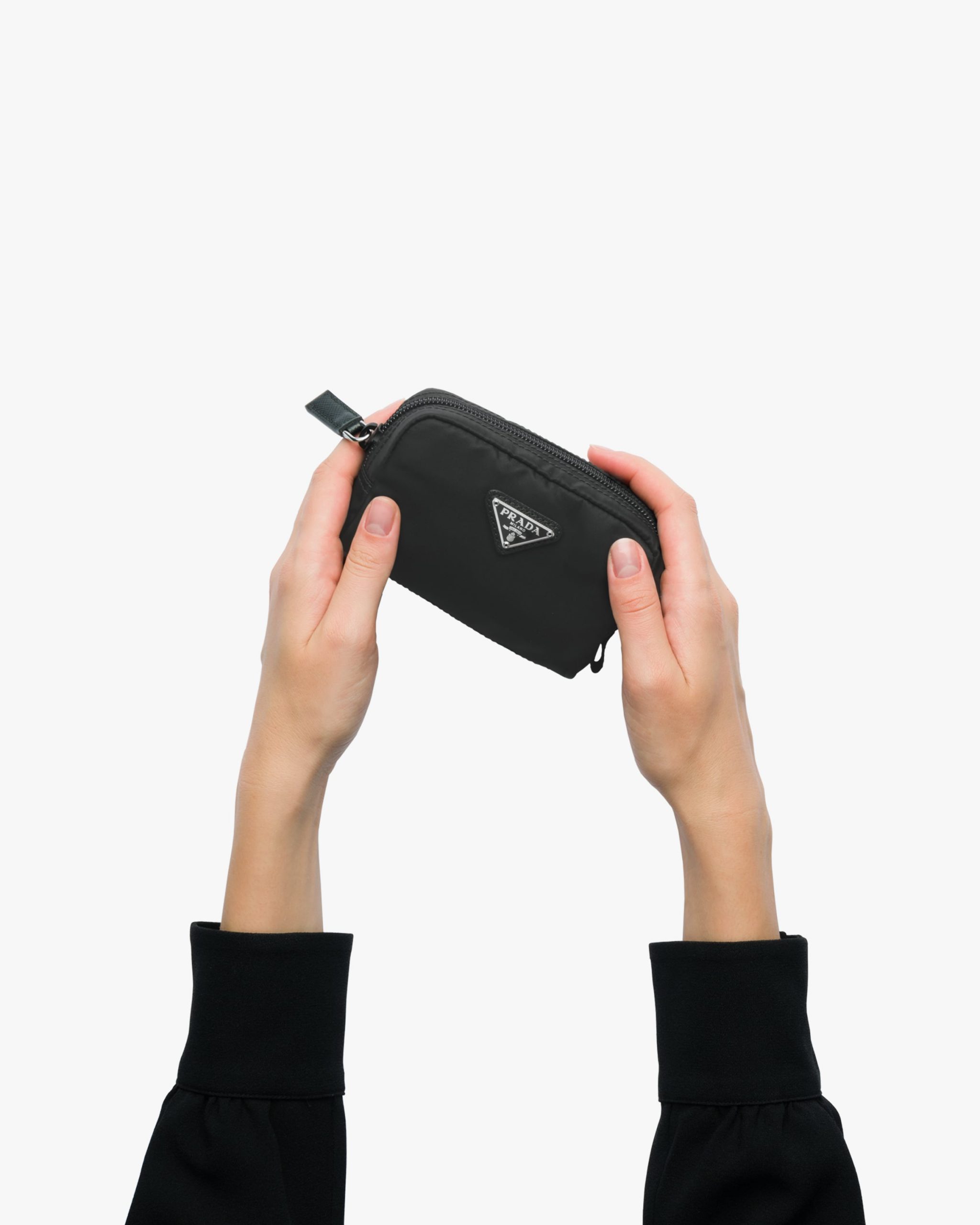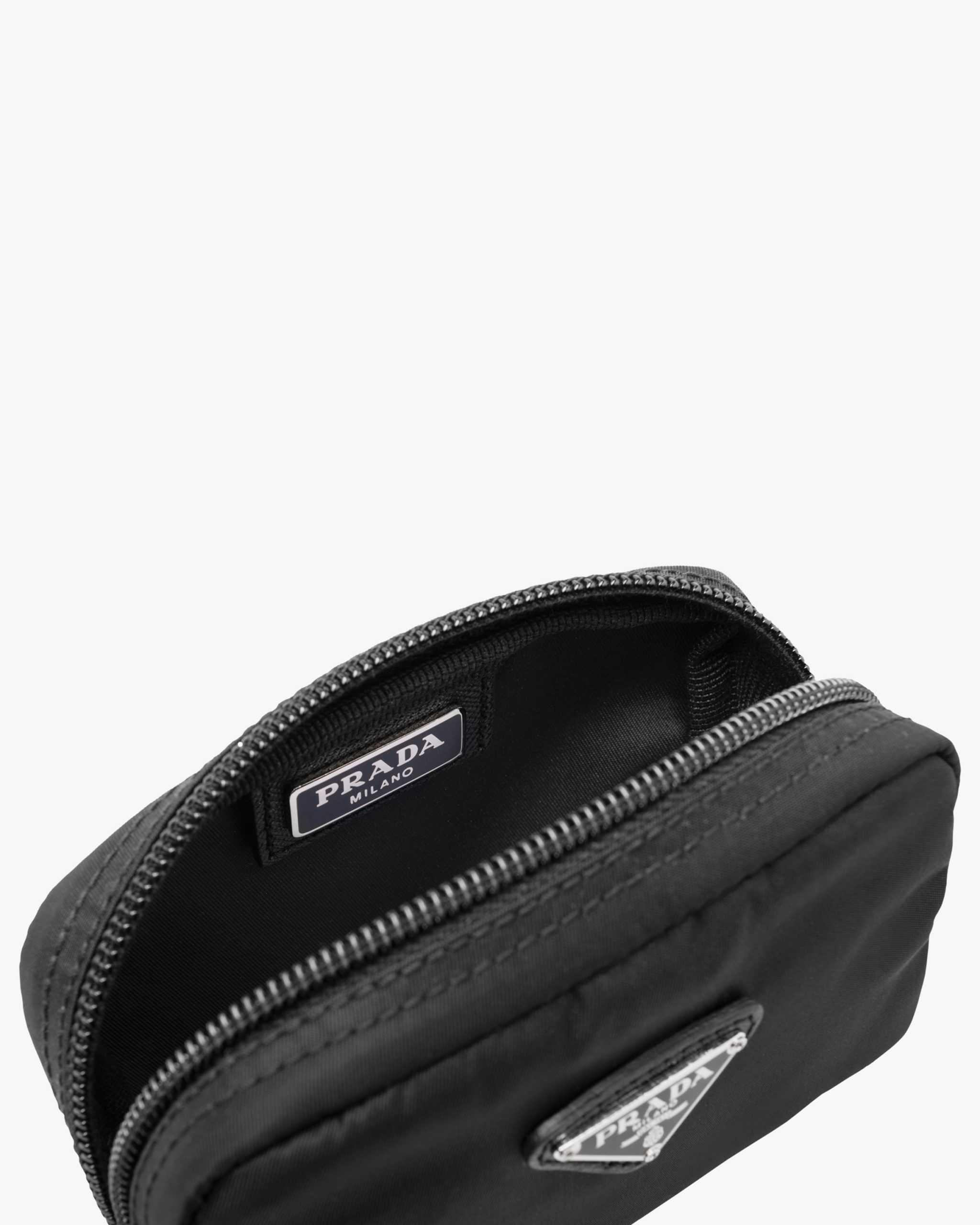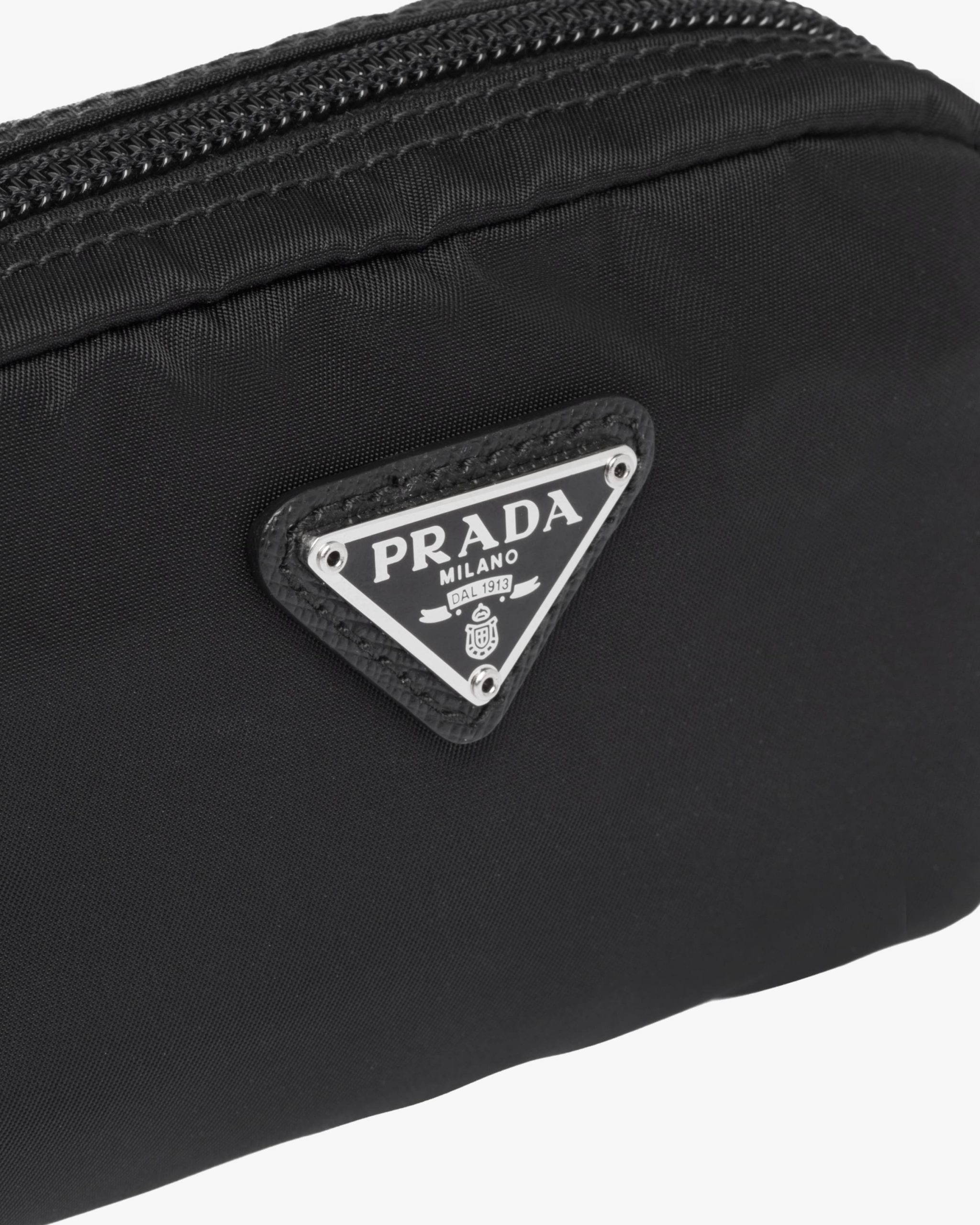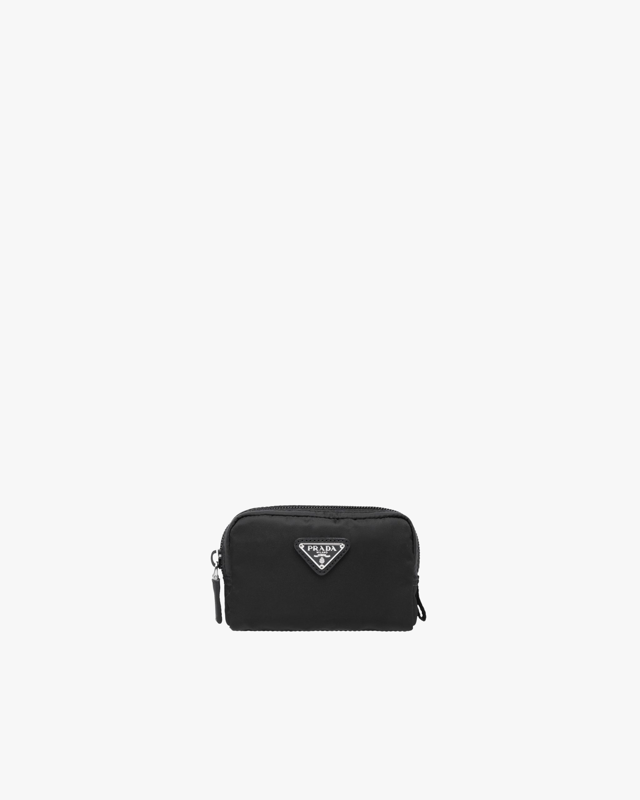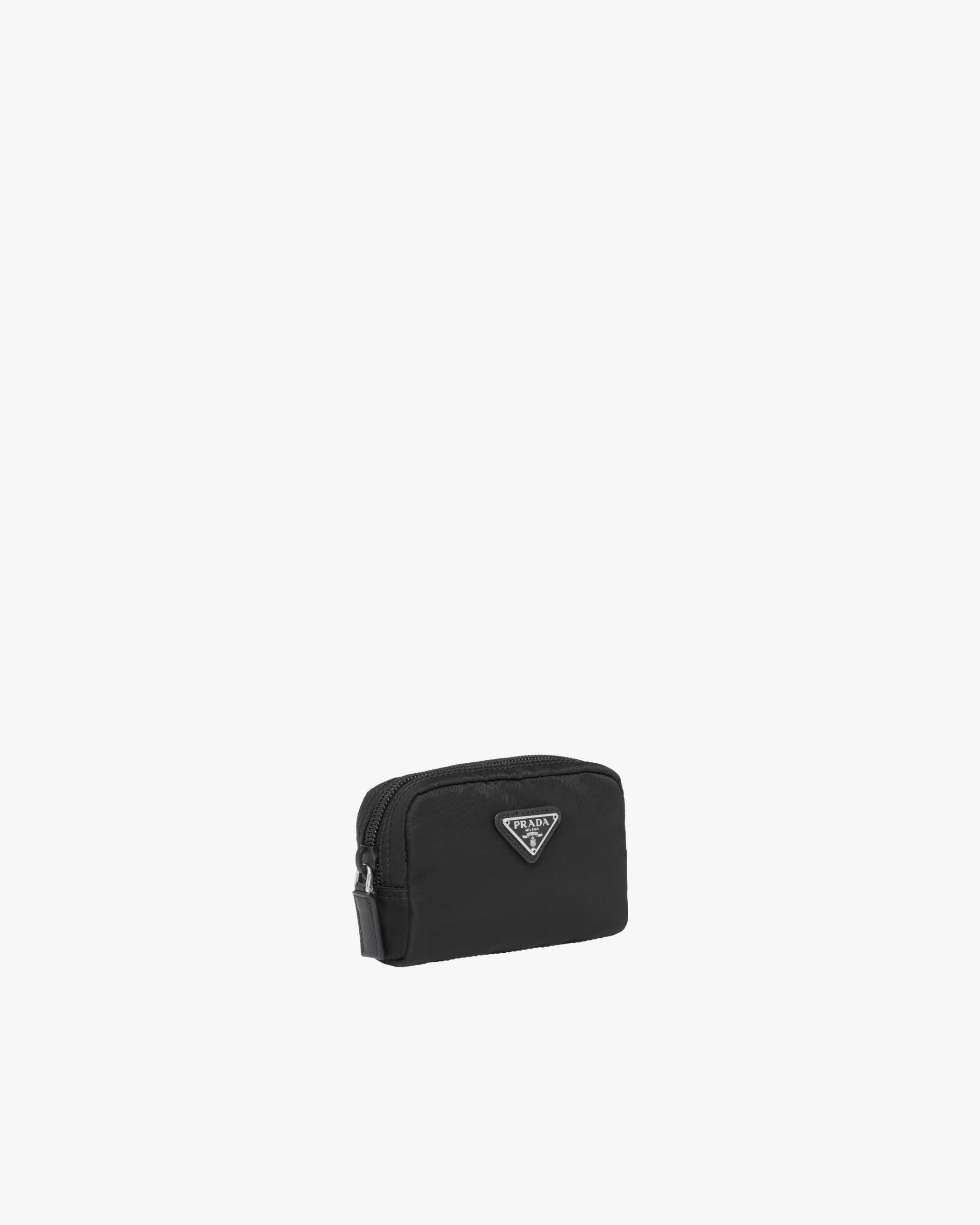 Characterized by a sleek line and emphasized by the iconic enameled metal triangle logo2, this pouch is made of Prada’s innovative Re-Nylon fabric produced from recycled plastic materials collectsed in the ocean. The accessory has an external zipper pocket.