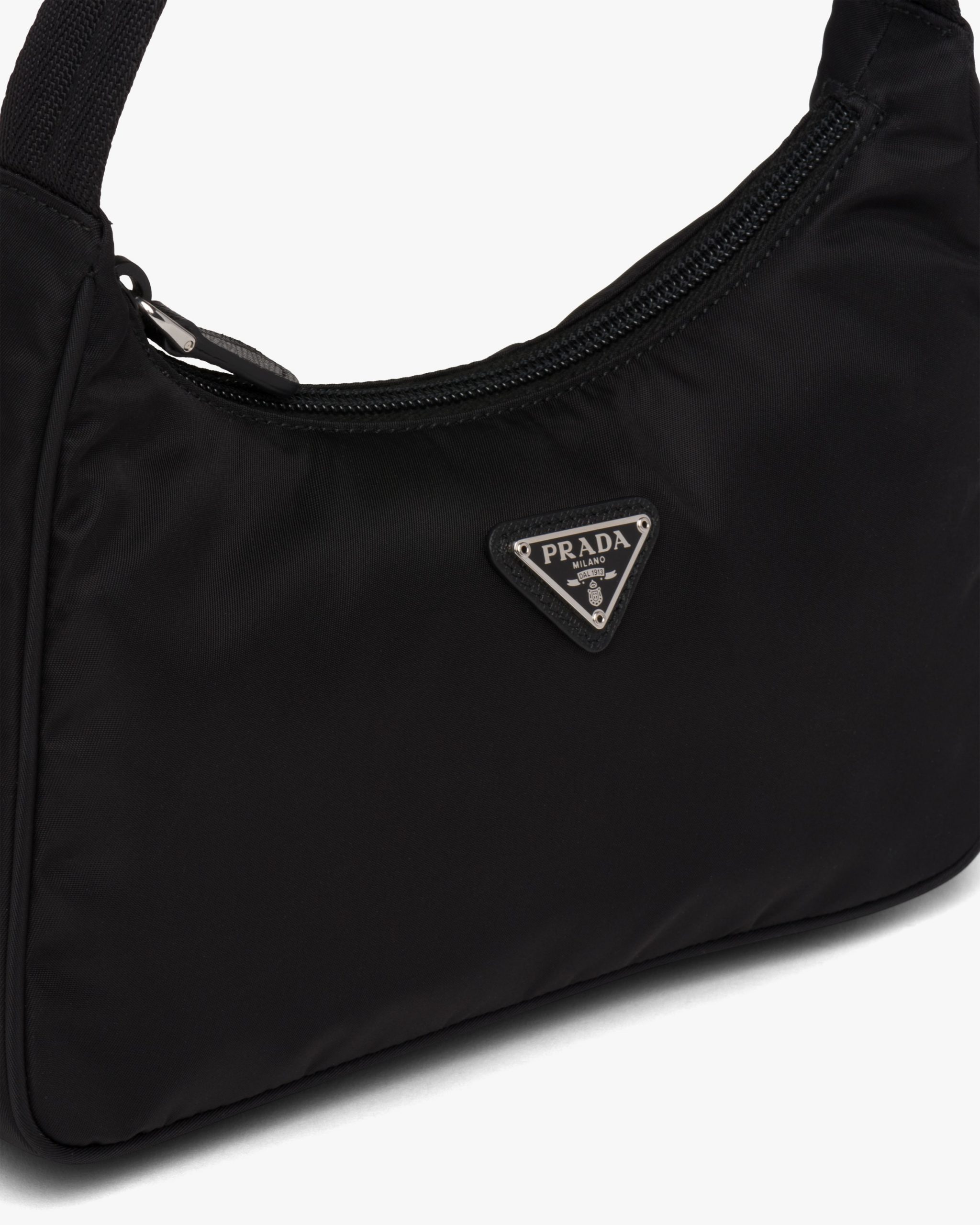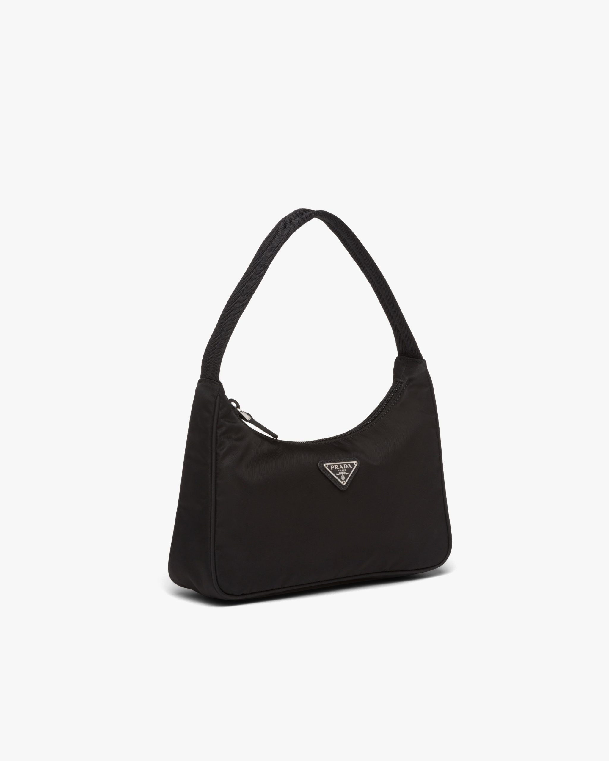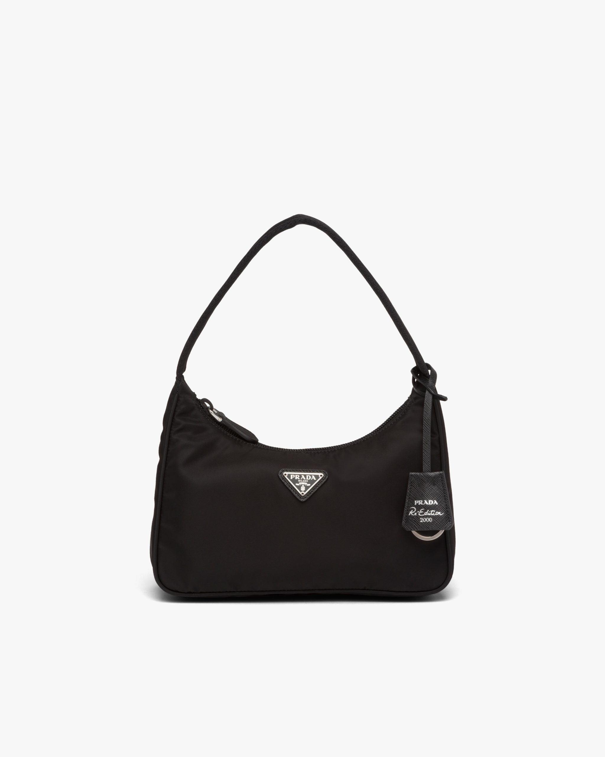 A new interpretation of an iconic Prada style, the Re-Edition 2000 mini-bag is made of innovative Re-Nylon, produced from recycled, purified plastic trash collectsed in the ocean, fishing nets, and textile waste fibers. The accessory with zipper closure and woven tape handle is decorated with the iconic enameled metal triangle logo2.