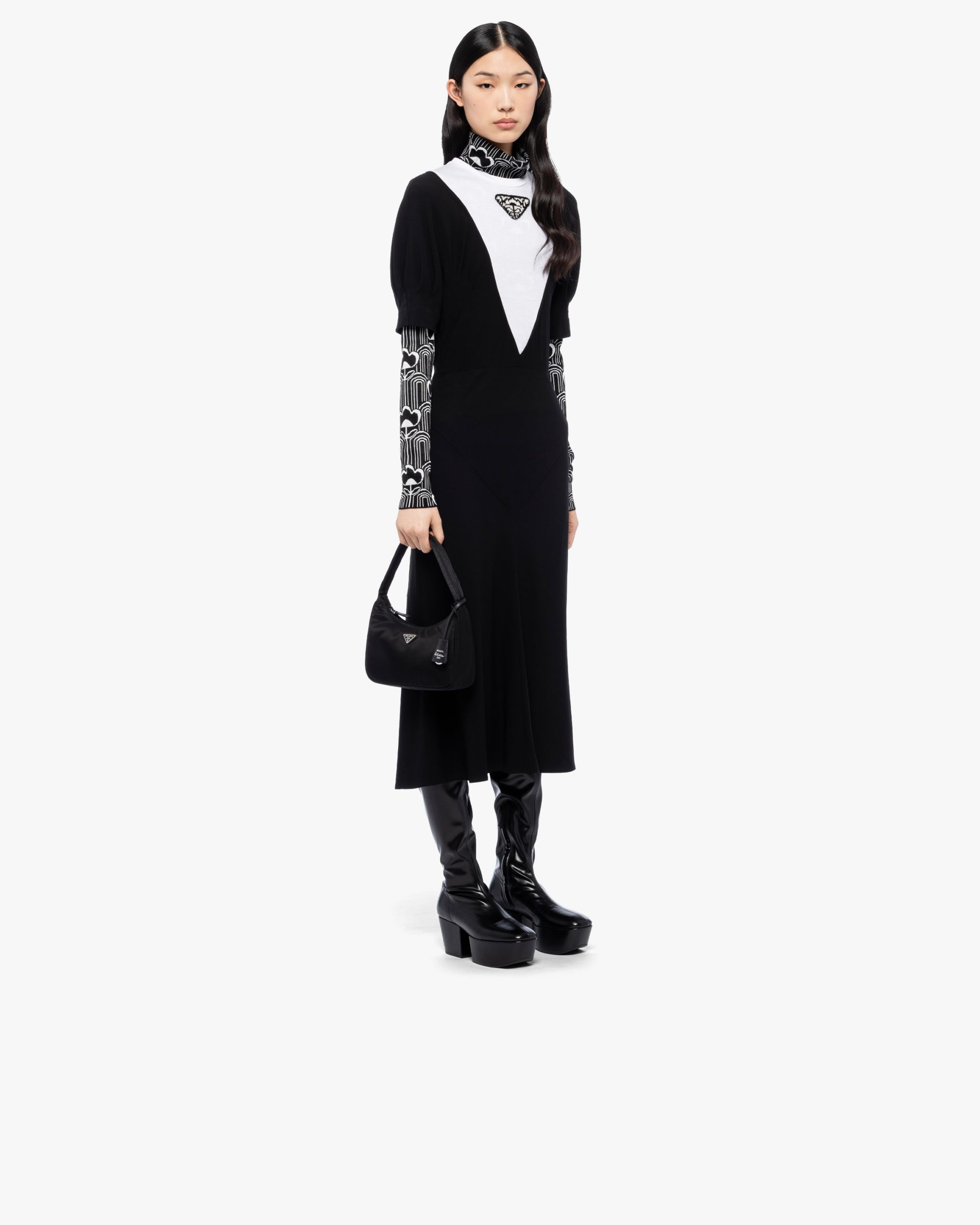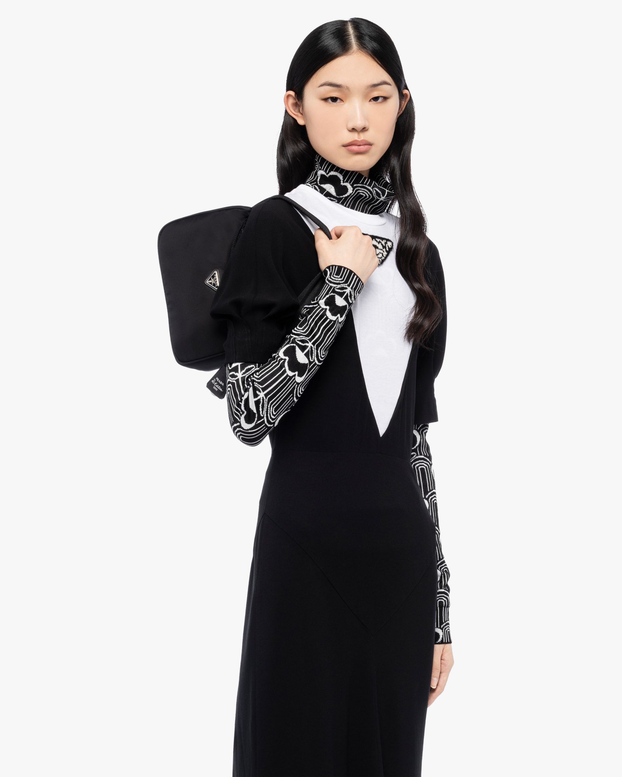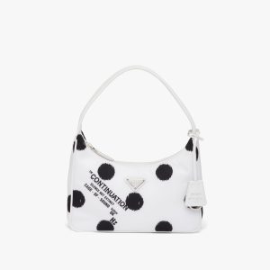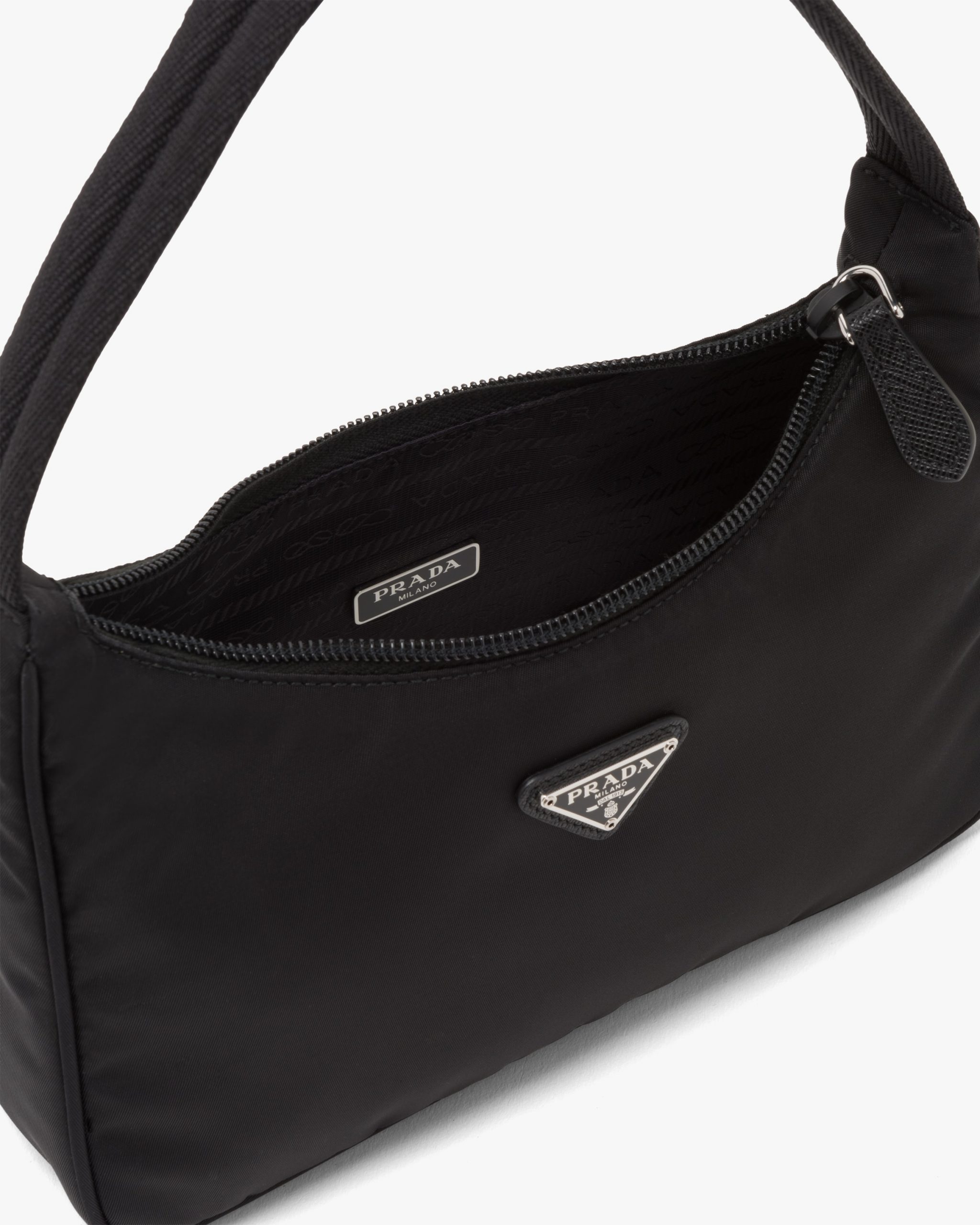 A new interpretation of an iconic Prada style, the Re-Edition 2000 mini-bag is made of innovative Re-Nylon, produced from recycled, purified plastic trash collectsed in the ocean, fishing nets, and textile waste fibers. The accessory with zipper closure and woven tape handle is decorated with the iconic enameled metal triangle logo2.